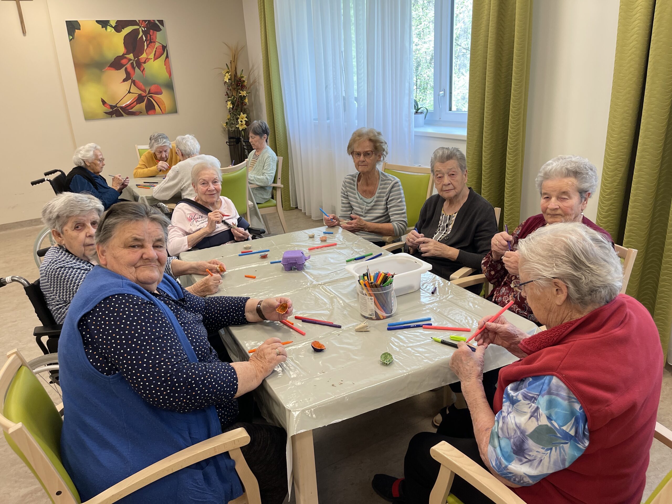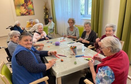 Die Bewohner:innen widmen sich den Osterbasteleien.