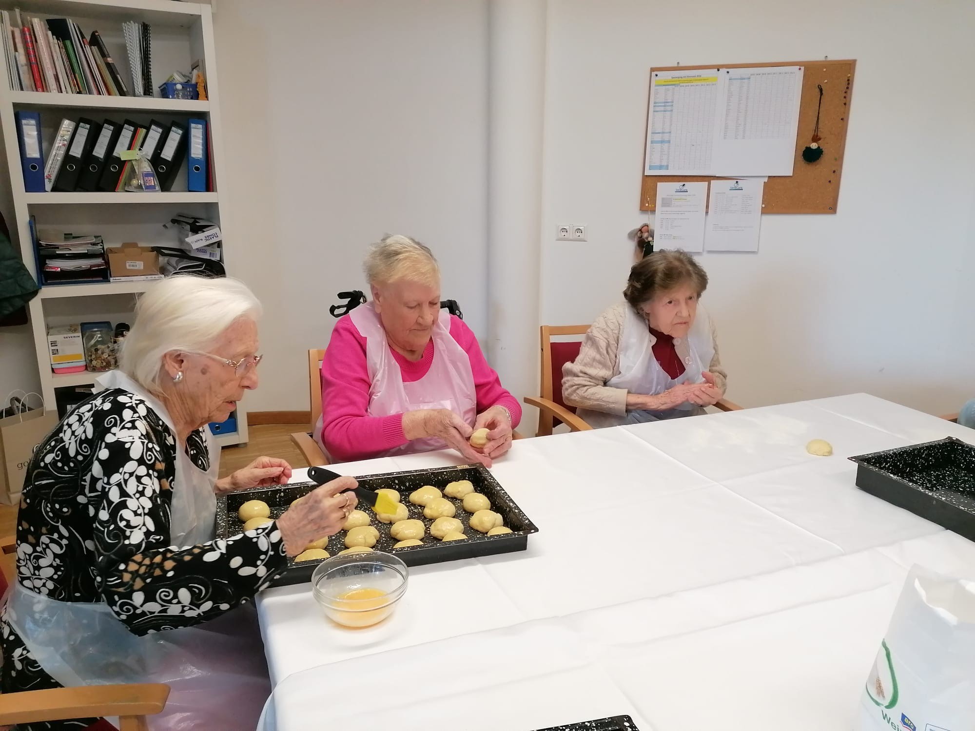 Mit großer Sorgfalt und Freude am Tun wurde geknetet, geformt und gebacken. Dabei stand neben der Vorbereitung auf das Osterfest vor allem das gemeinsame Erleben im Mittelpunkt. Die frisch gebackenen Pinzen tragen nun zur österlichen Stimmung im Haus bei und sind ein schönes Ergebnis der gelungenen Zusammenarbeit.