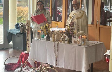 Am Karsamstag fand im SeneCura Sozialzentrum Afritz die alljährliche Osterspeisensegnung der Bewohner:innen, Mitarbeiter:innen sowie Bürger:innen aus Afritz statt. Die reichlich gefüllten Osterkörbe mit Fleisch, Brot, Kren, Eiern und Reindling wurden dabei von Pfarrer Theo Srienz in einer feierlichen Zeremonie gesegnet. Die Senior:innen freuten sich sehr über den feierlichen Gottesdienst und die österliche Tradition, die bereits seit Kindheitstagen bekannt ist.
