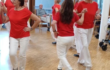 Im SeneCura Sozialzentrum St. Margarethen an der Raab ging‘s fröhlich zu, als die örtliche Line-Dance-Gruppe „Overliners“ ihre beschwingten Countrytänze aufführten. Die vielen unterschiedlichen Choreographien zu modernen Melodien sorgten für große Begeisterung unter den Bewohner:innen. Die schwungvollen Rhythmen luden zum Mitschunkeln ein und sorgten für eine ausgelassene Stimmung.