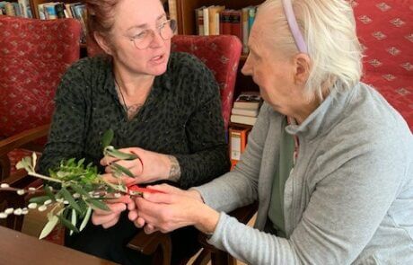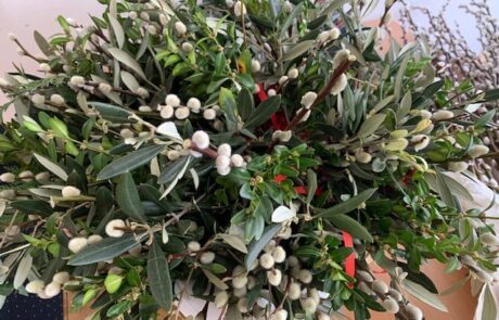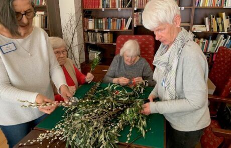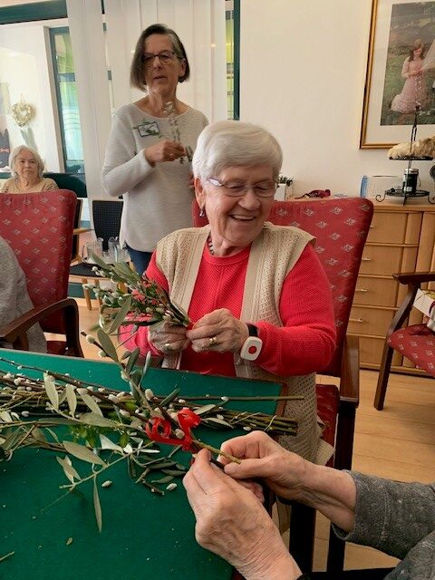 Verschiedenste Grünzweige wurden gesammelt, um mit den Bewohner:innen des SeneCura Sozialzentrums Dornbirn schöne Palmbuschen für die Palmweihe binden zu können. Der Duft der Zweige und das fröhliche Miteinander waren für alle eine Wohltat – das farbliche „i-Tupferl“ stellten die zum Abschluss angebrachten roten Bänder und Maschen dar. Im Rahmen der Heiligen Messe wurden die Palmbuschen anschließend geweiht. Das gemeinsame Binden hat den Bewohner:innen sowie Mitarbeiter:innen einiges an Spaß bereitet und die Vorfreude auf die Osterfeiertage so richtig steigen lassen.