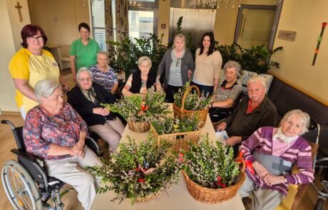 Der Osterhase steht vor der Tür! Rechtzeitig vor Beginn der Osterfeiertage trafen sich die Bewohner:innen des SeneCura Sozialzentrums Unterpremstätten, um gemeinsam Palmbuschen zu binden. Im Anschluss an den kreativen Nachmittag im SeneCura Sozialzentrum Mühldorf wurden die Palm-Kunstwerke an die Bewohner:innen des Hauses verteilt. Die Seniorinnen und Senioren erfreute das gemeinsame Palmbesen binden sehr und die Palmweihe konnte kaum erwartet werden.