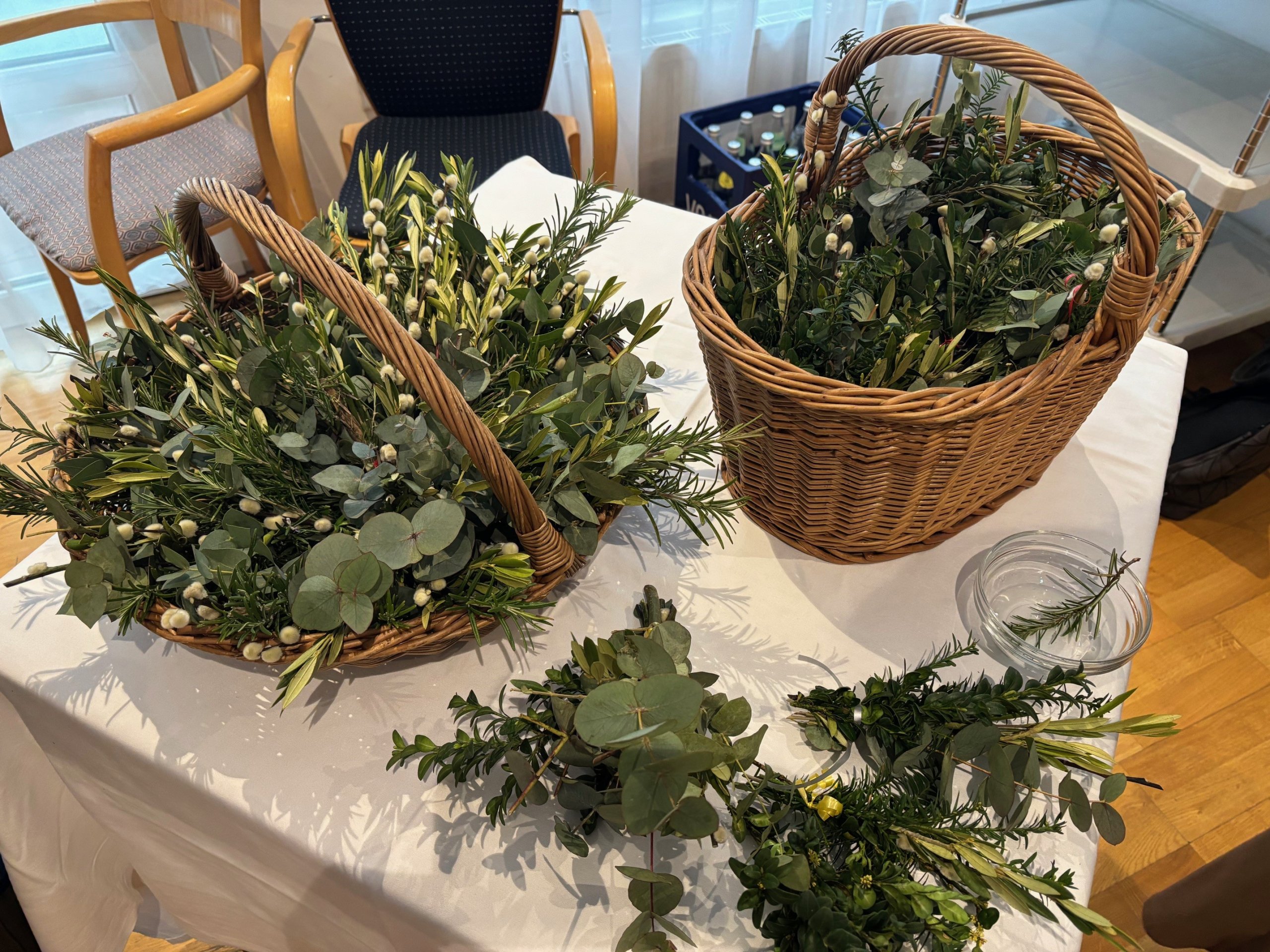 Die gebundenen Palmbuschen wurden anschließend von unserer Seelsorgerin Elisabeth feierlich geweiht und an alle Bewohner:innen im Haus verteilt. Eine liebgewonnene Tradition, die Gemeinschaft schafft und auf das Osterfest einstimmt.