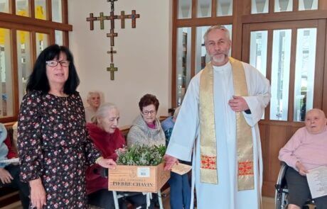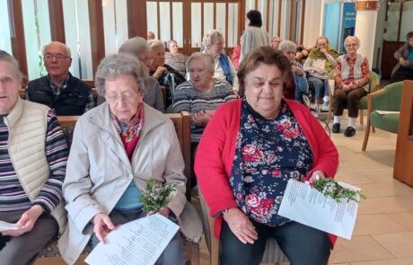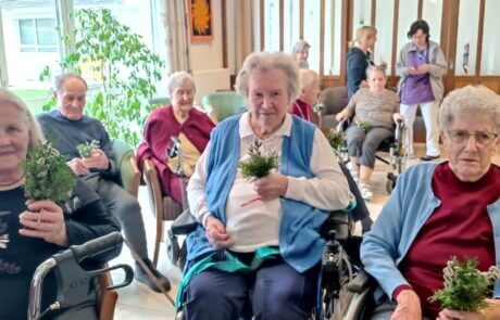 Jedes Jahr wird von den Bewohner:innen des SeneCura Sozialzentrums Frantschach-St. Gertraud die Palmweihe freudig erwartet. Die Palmbuschen wurden vor ein paar Tagen gemeinsam mit den Mitarbeiter:innen mit großem Engagement gebunden und gestaltet. Ausgerüstet mit tollen, selbstgemachten Palmbuschen stand einer feierlichen Stunde nichts im Wege. Die Palmweihe ist für unsere BewohnerInnen ein besonderer Anlass, da der Palmbesen mit sehr vielen Bräuchen im Lavanttal in Verbindung steht, weshalb sehr viele Bewohner:innen die Palmweihe besuchten. Nach der Segnung durften sich natürlich die Bewohner:innen ihre schön gestalteten Palmbuschen nehmen und ihre Wohneinheiten damit schmücken. Es war ein traditionelles und schönes Fest.
