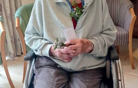 Die Bewohnerin freut sich über die Palmweihe.