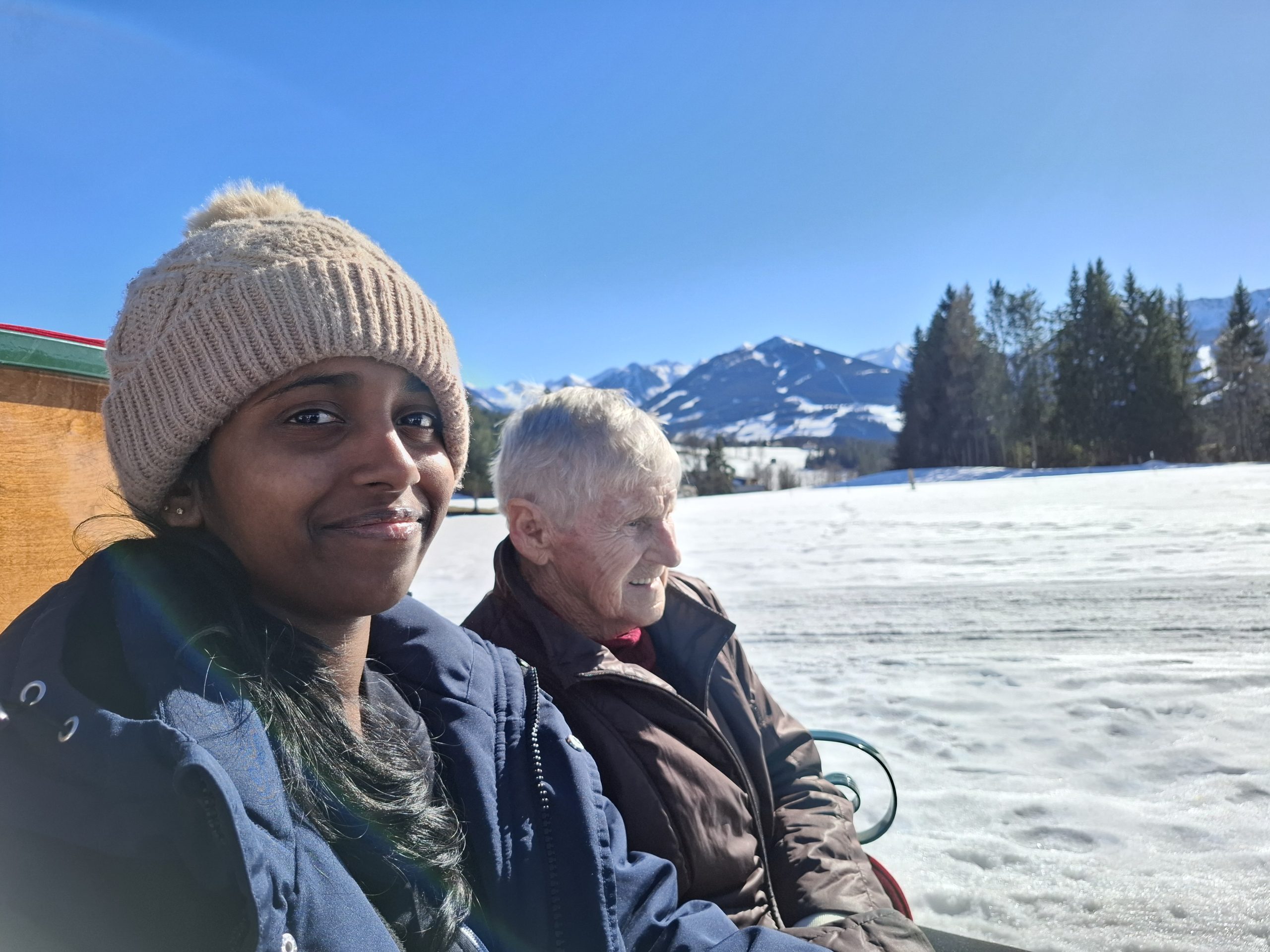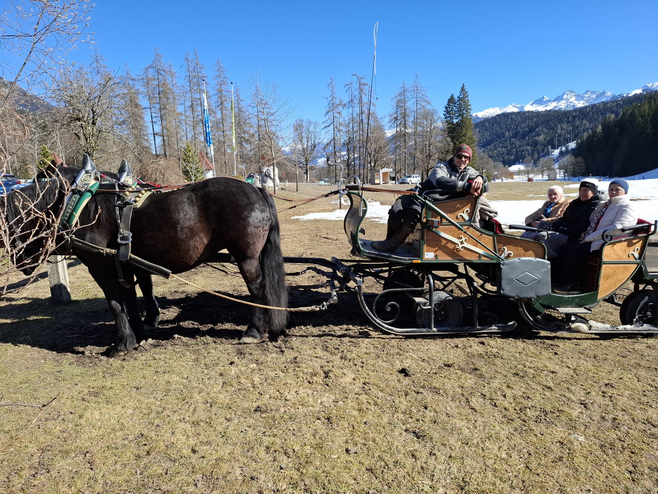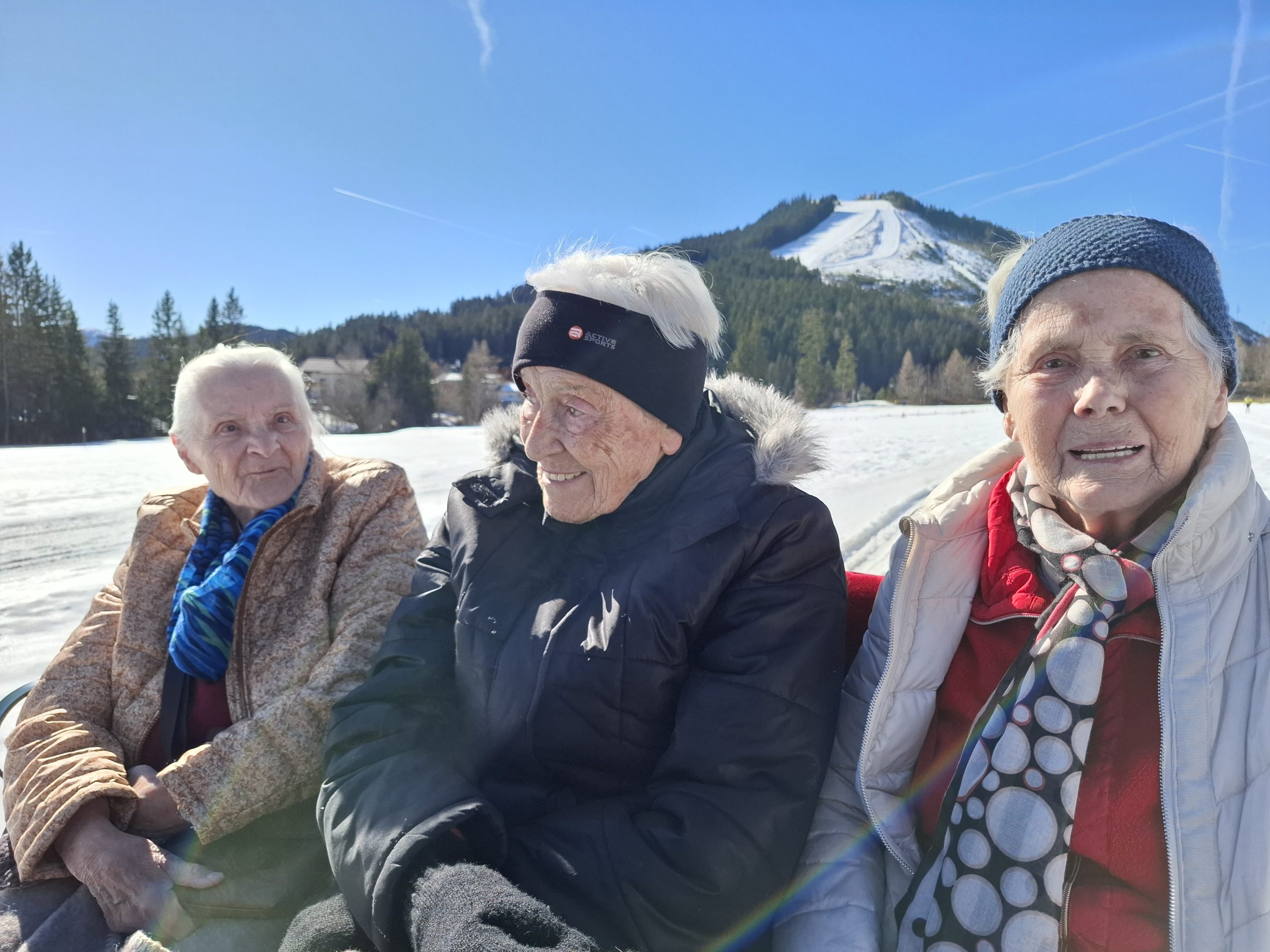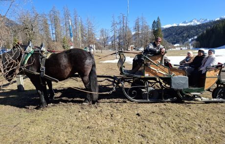 Noch einmal die winterliche Landschaft in vollen Zügen genießen – das ließen sich die Bewohner:innen des SeneCura Sozialzentrums Schladming nicht entgehen. Bei strahlendem Sonnenschein vor der Schneeschmelze unternahmen sie eine gemütliche Pferdeschlittenfahrt in die Ramsau. Eingehüllt in warme Decken führt die Fahrt durch die verschneite Natur, bevor der Ausflug mit einer gemütlichen Einkehr ausklang. Gemeinsam genossen die Ausflügler:innen bei einem Kaffee ein süßes Gebäck. Es war ein besonderes Erlebnis, das für einige strahlende Gesichter sorgte.