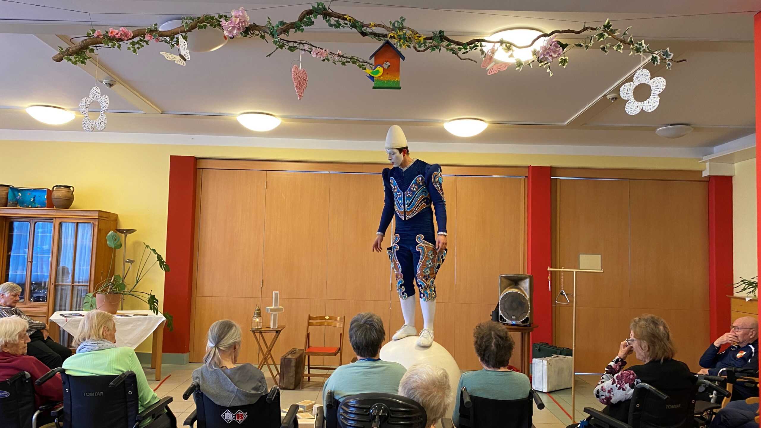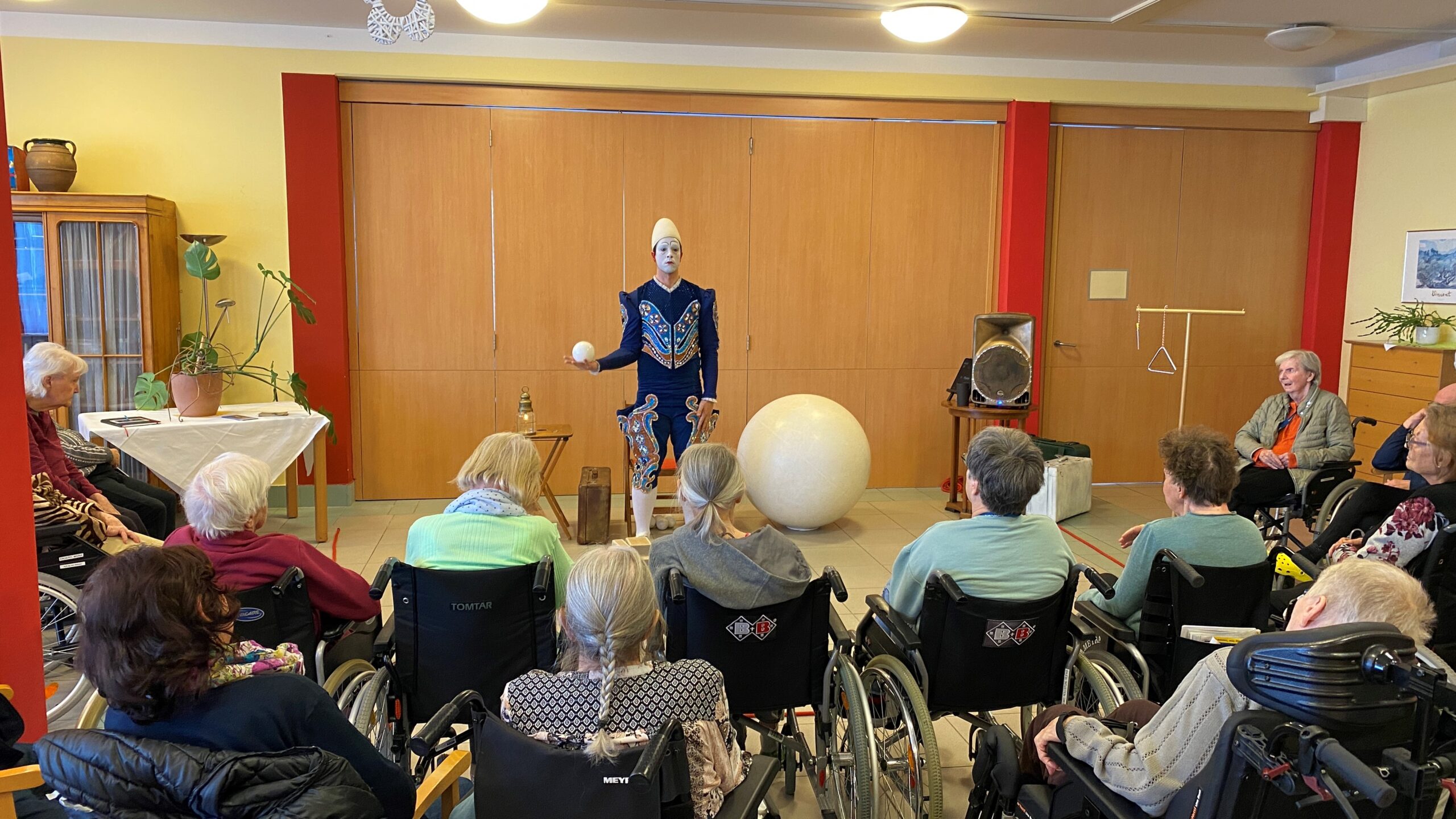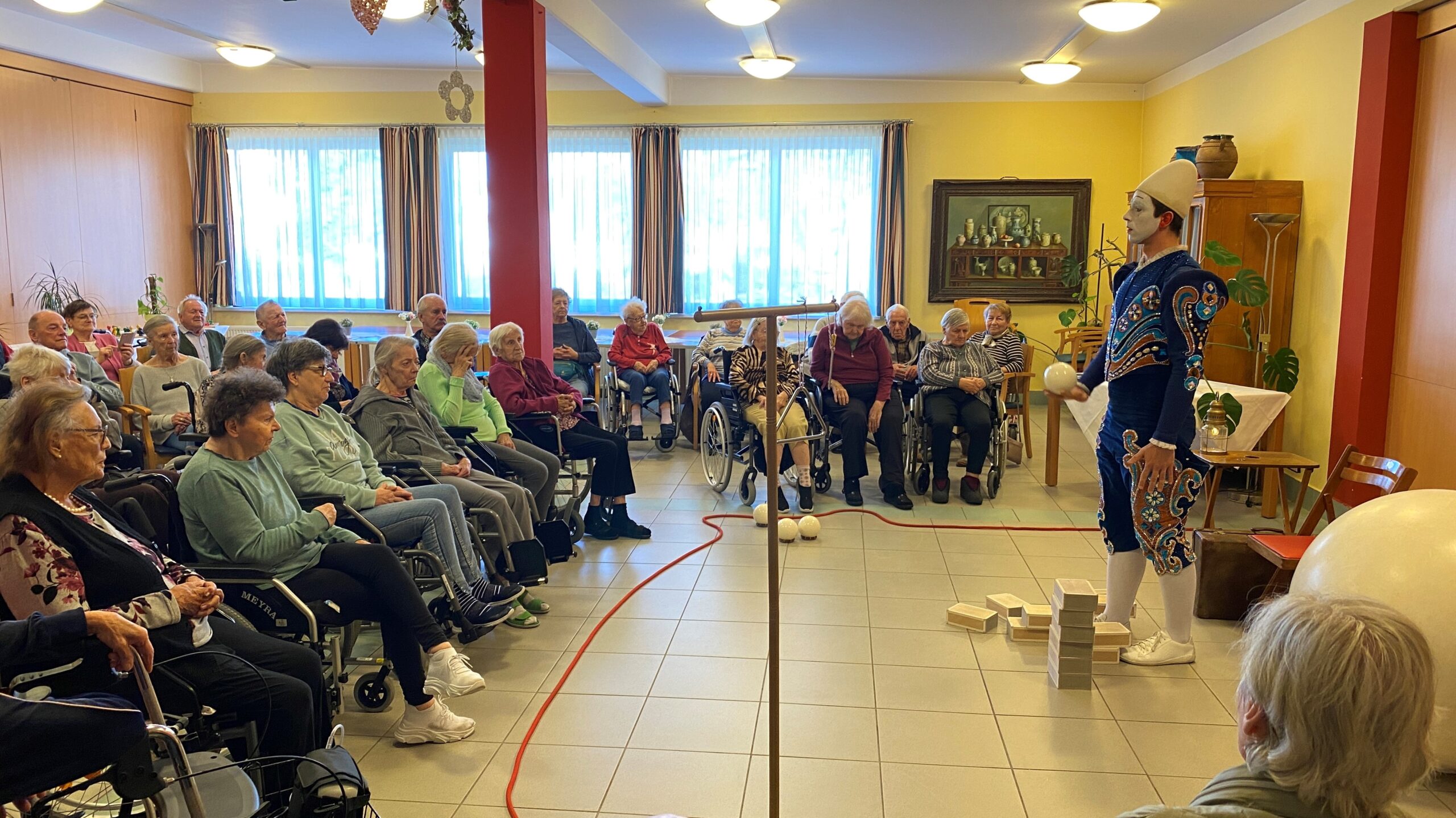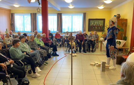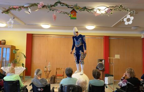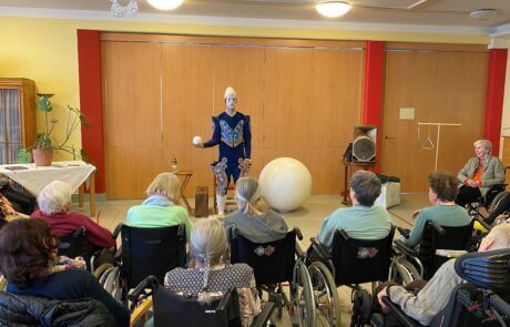 Auch im SeneCura Sozialzentrum Knittelfeld besuchte der Weißclown, Pierre Roman, die Bewohner:innen des Hauses und begeisterte mit seinem Können. Der Künstler hat eine Zirkusvorstellung speziell für Pflegeheime geschaffen. Der Weißclown „Pierre Roman“ ist eine Zirkusfigur aus der Vergangenheit und bezaubert die Anwesenden mit seiner kunstvollen Akrobatik und dem raffinierten Jonglieren. Ganze 40 Minuten voller Überraschungen begeisterte Pierre Roman die Bewohner:innen und überrascht mit unterschiedlichen Programmpunkten immer wieder aufs Neue. Die Bewohner:innen sind rundum begeistert von dieser tollen Darbietung, welche noch lange in Erinnerung der Anwesenden bleiben wird.