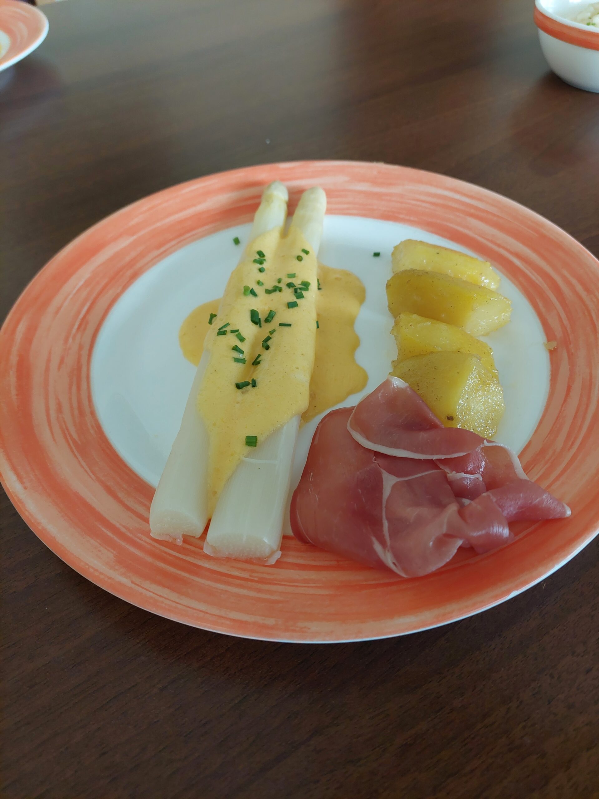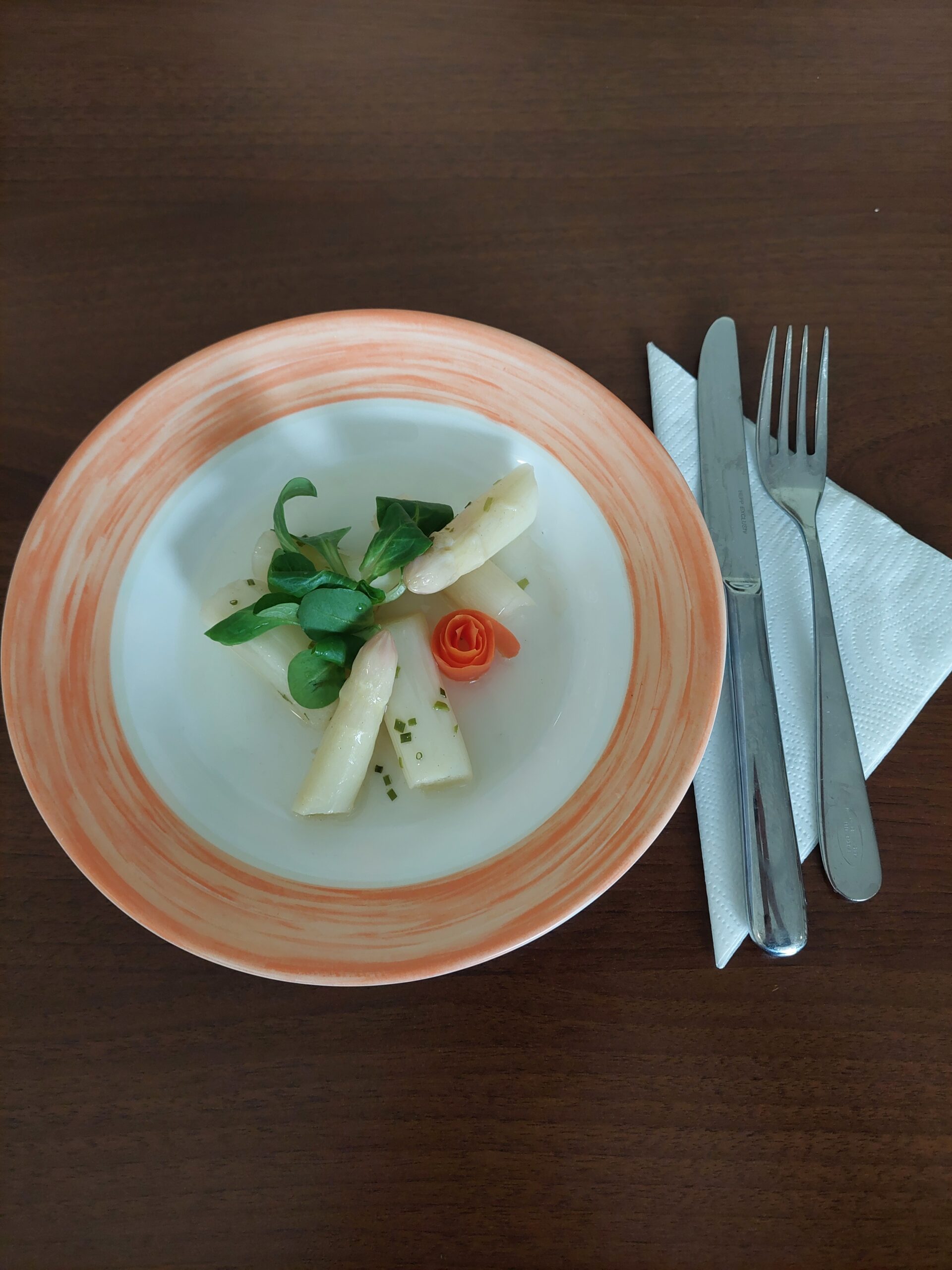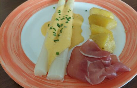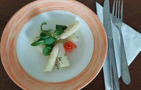 Der Kochlehrling des SeneCura Sozialzentrums Frantschach – St. Gertraud, Thomas, wird im Mai zur Lehrabschlussprüfung antreten und dafür muss natürlich fleißig geübt werden. Aus diesem Grund gab es kürzlich ein Probeessen im Haus. Auf der Probeliste standen Spargelgerichte, deshalb wurde zur Vorspeise ein köstliches Spargel-Kräuter-Vinaigrette, zur Hauptspeise Spargel mit Sauce Hollandaise und Rohschinken sowie ein Spargelrisotto serviert – es war köstlich!