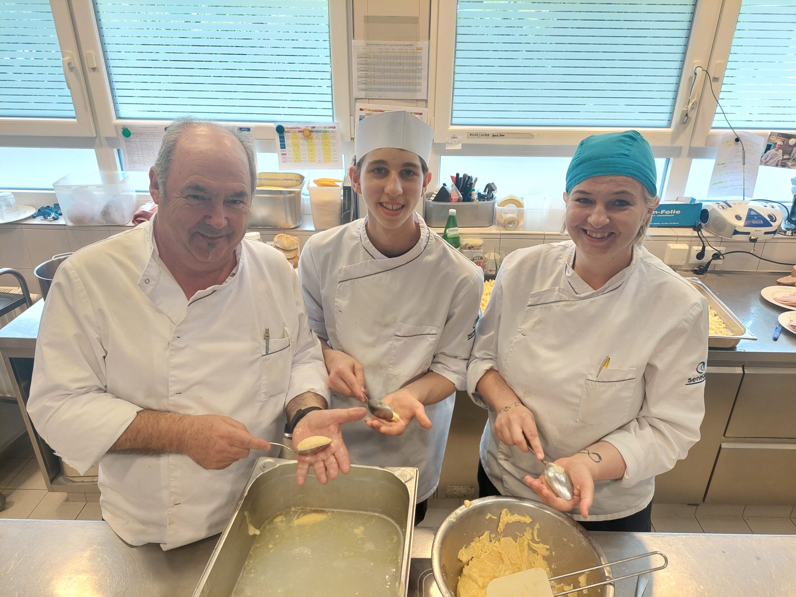 Der erfahrene Küchenleiter David Hinteregger und unsere hervorragende Köchin Barbara Hasenbichler unterstützen ihren Schützling, wo sie nur können. Egal, ob es das Formen von perfekten Grießnockerl ist oder das Backen eines saftigen Vollkornapfelkuchens – die beiden Mentoren haben jahrzehntelange Erfahrung und geben Geheimtricks und Tipps gerne weiter.