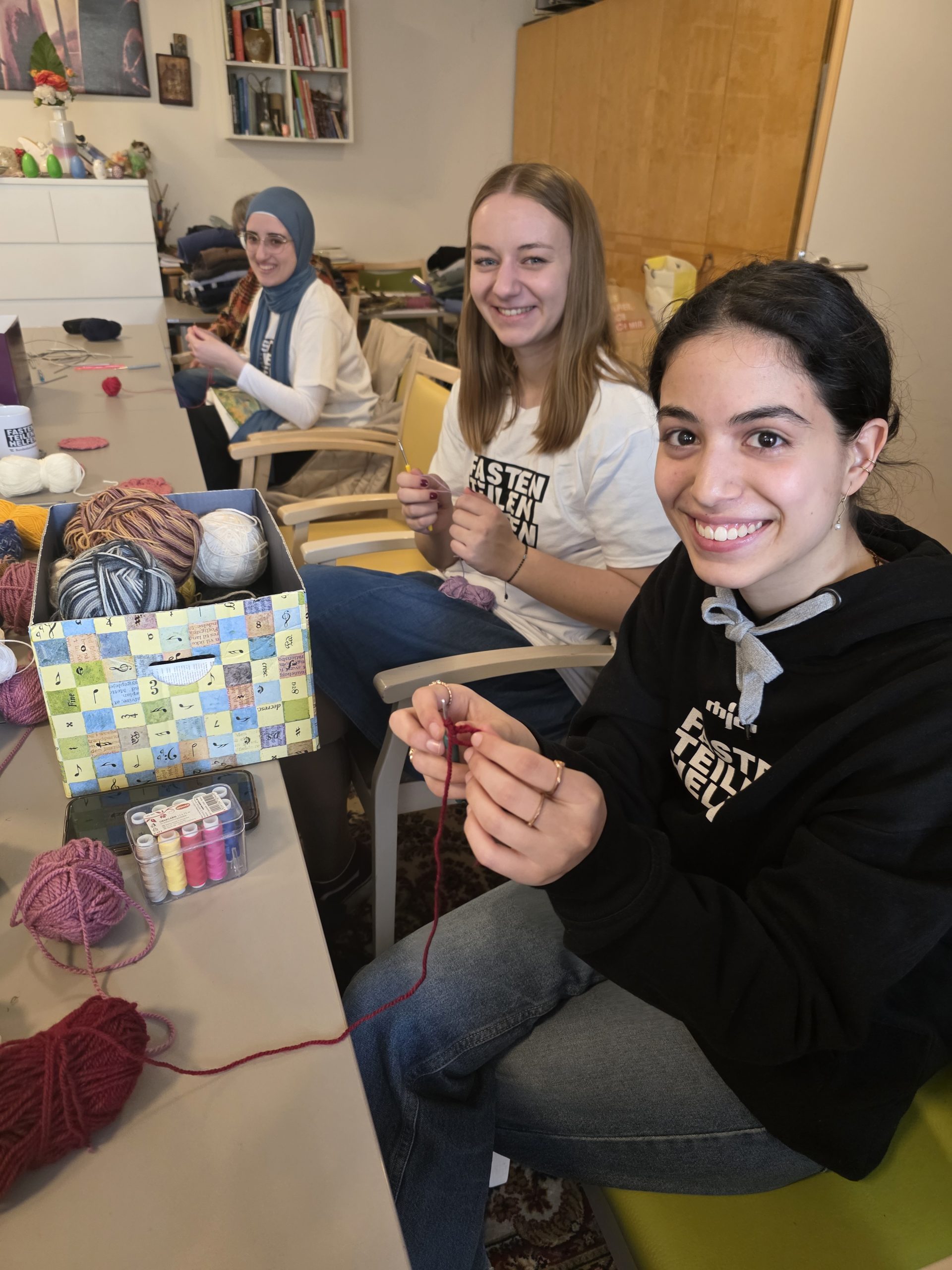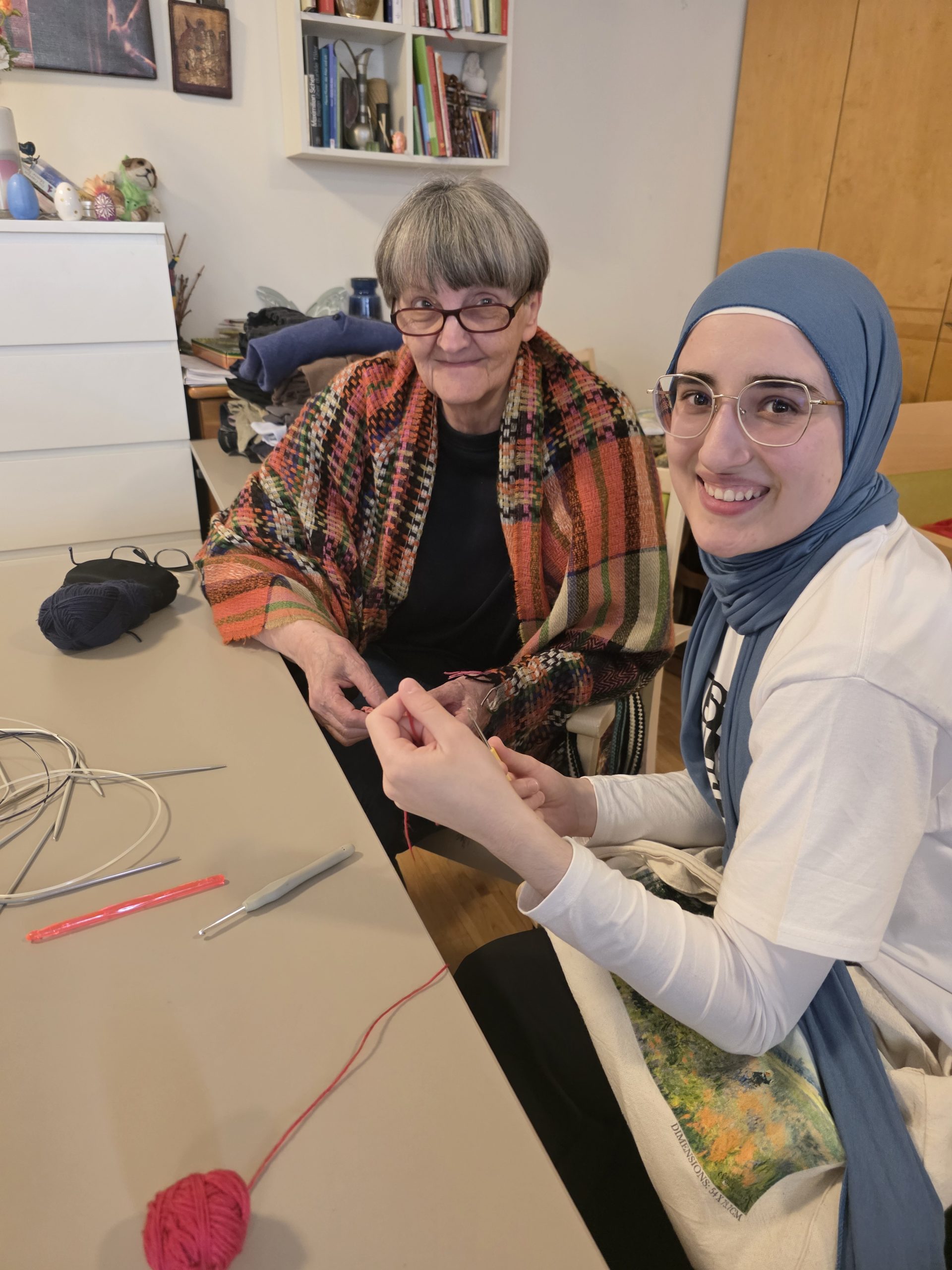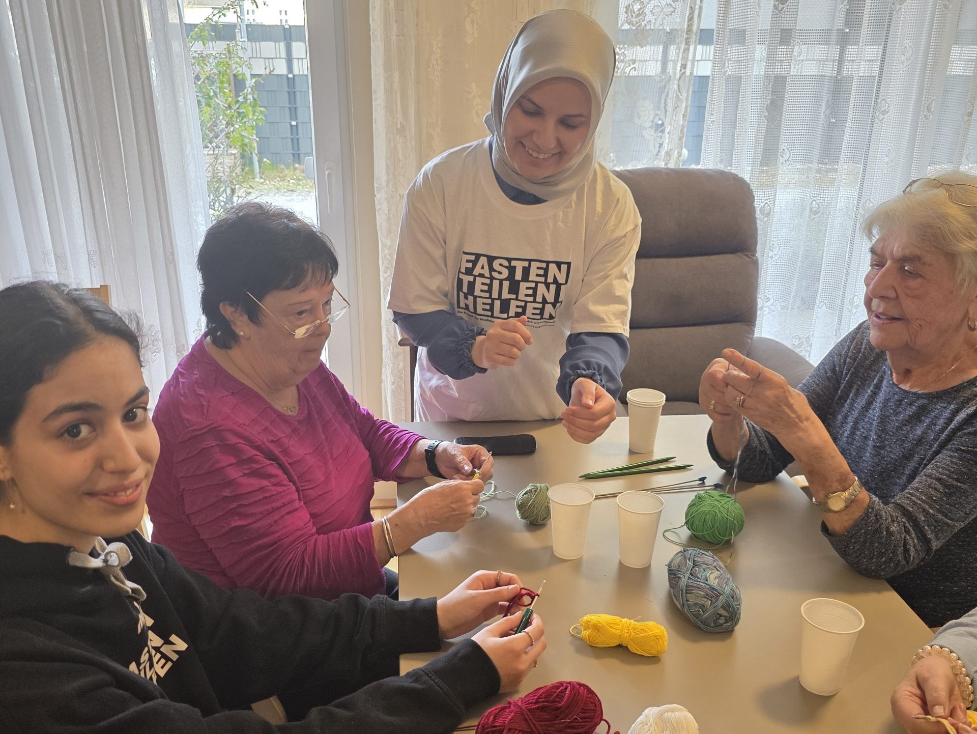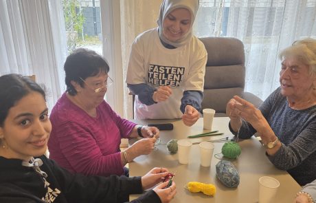 Auch dieses Jahr darf der Aktivitätenleiter des SeneCura BePartments Graz-Lend, Siegfried Rumpold, junge Damen und Herren der Hochschule Johanneum begrüßen. Die Gruppe Mjö-Muslimische Jugend Österreich hat in der Fastenzeit Ramadan ein tolles Projekt erarbeitet. Sie besuchen Krankenhäuser, Seniorenheime und vieles mehr, um gemeinsam und unterstützend vor Ort zu sein. Heute am Programm im Haus stand das Häkeln. Gegenseitig helfen sich die verschiedenen Generationen und haben viel Spaß dabei. Der Aktivitätenleiter findet solchen kulturellen Austausch enorm wichtig, was auch das rege Interesse der Damen und Herren des BePartments zeigt.