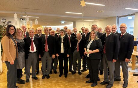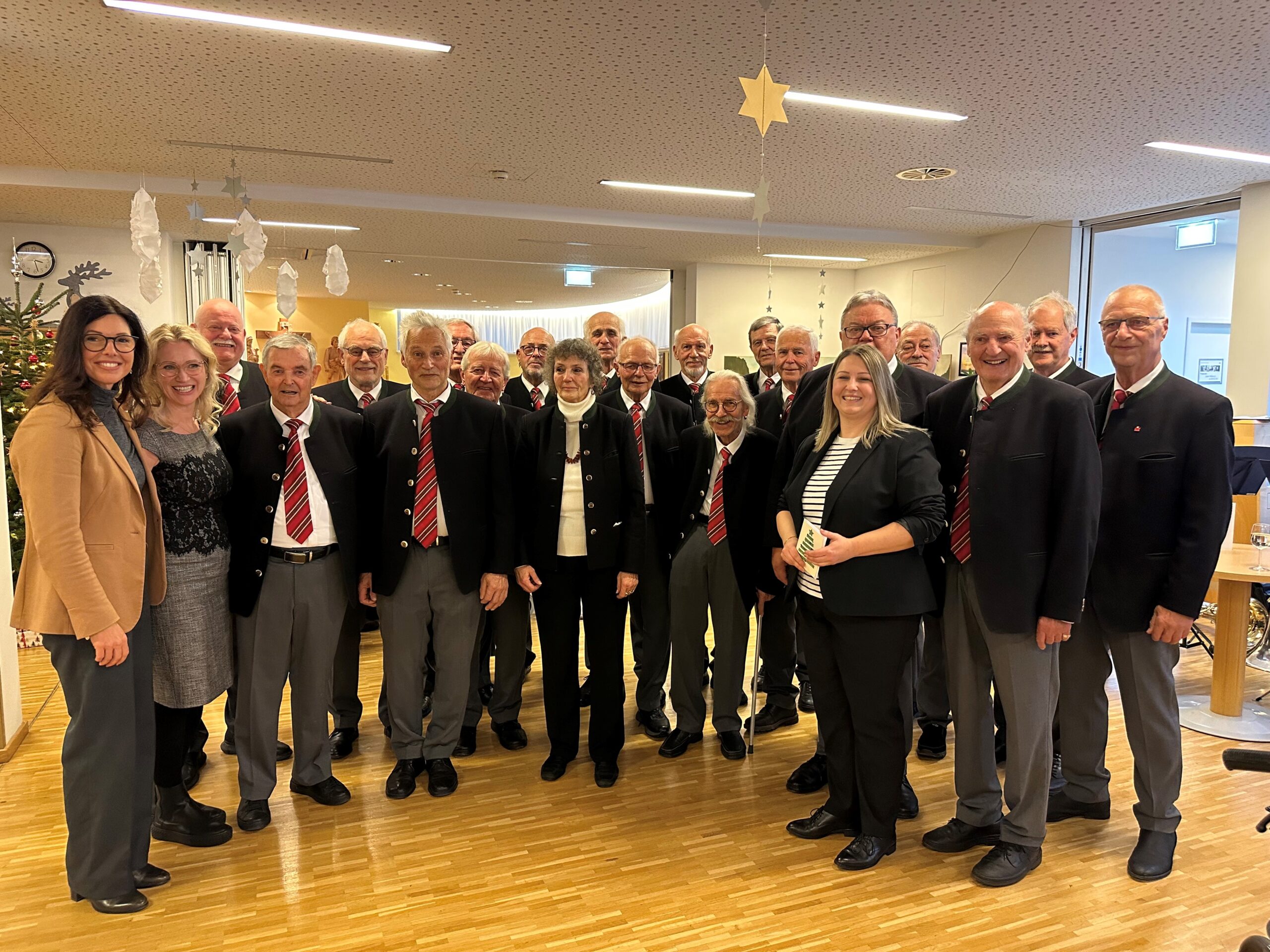Kurz vor Weihnachten wurde im SeneCura Laurentius-Park Bludenz eine prunkvolle Weihnachtsfeier veranstaltet. Rund 160 Gäste und Bewohner:innen kamen zusammen. Empfangen wurden Gäste mit den selbstgebacken Keksen die unser ehrenamtliche Mitarbeiterin Elfi Brändle & Team mit den Bewohner:innen selbst gebacken hat. Musikalisch begleitet wurde das Fest vom Bläserquintett der Eisenbahnermusik und der Bludenzer Sängerrunde, die uns schon über viele Jahre treu begleiten. Das Küchenteam versorgte alle mit kulinarischen Köstlichkeiten: Ein tolles 3 Gänge Menü mit krönendem Spekulatius-Tiramisu verzauberte alle.