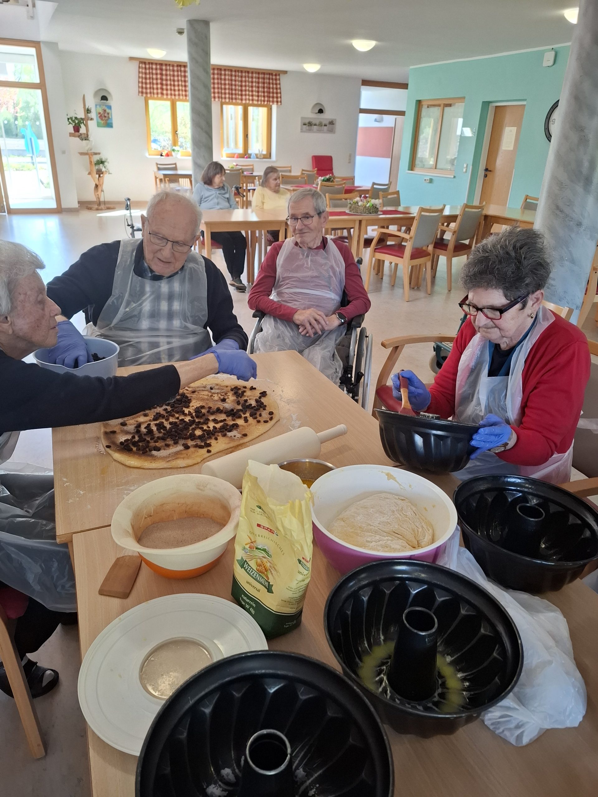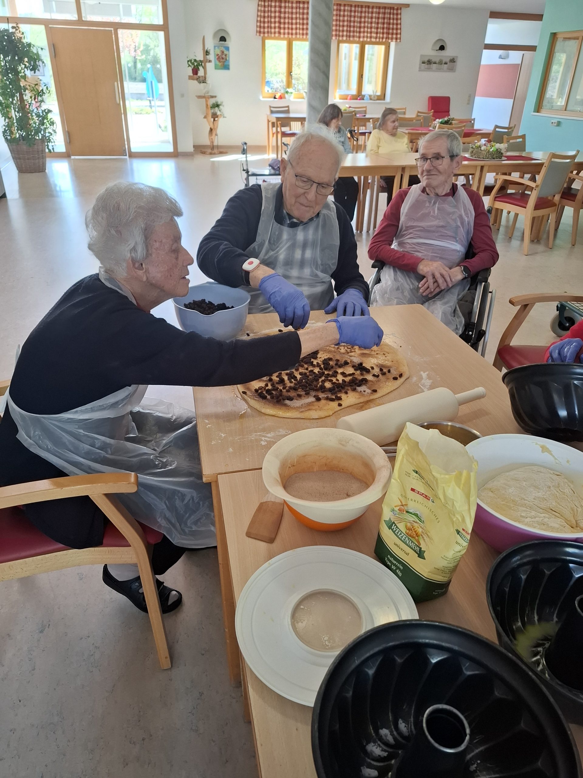 In einem harmonischen Miteinander pflegten die Bewohner:innen und Mitarbeitenden des SeneCura Pflegezentrums St. Veit an der Glan in der vergangenen Woche ihre gemeinsame Backtradition. In Vorbereitung auf die Osterjause wurden in der hauseigenen Küche duftende Reindlinge gebacken. „Es ist wunderbar, gemeinsam zu backen. Es stärkt die Gemeinschaft und weckt die Vorfreude auf das Osterfest“, schwärmt eine Bewohnerin des SeneCura Pflegezentrums St. Veit. Die Reindlinge wurden mit viel Liebe zum Detail und einem Hauch von Nostalgie zubereitet, mit reichlich Zimt und Zucker verfeinert und werden am Samstag traditionell zur Osterjause serviert.