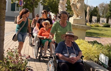 Kürzlich fand im SeneCura Sozialzentrum St. Veit in der Südsteiermark eine Rollstuhlausfahrt für zahlreiche Bewohner:innen statt, die von den ehrenamtlichen Mitarbeiterinnen begleitet wurde. Ziel war die Konditorei Kaiser, bei der die Ausflügler:innen mit köstlichen Spezialitäten und Getränken verwöhnt wurden. Das Wetter spielte hervorragend mit, weshalb alle den Besuch in der Konditorei auf der Terrasse in vollen Zügen genossen. Der Ausflug sorgte für viel Spaß, tolle Erinnerungen und dankbare Gesichter.