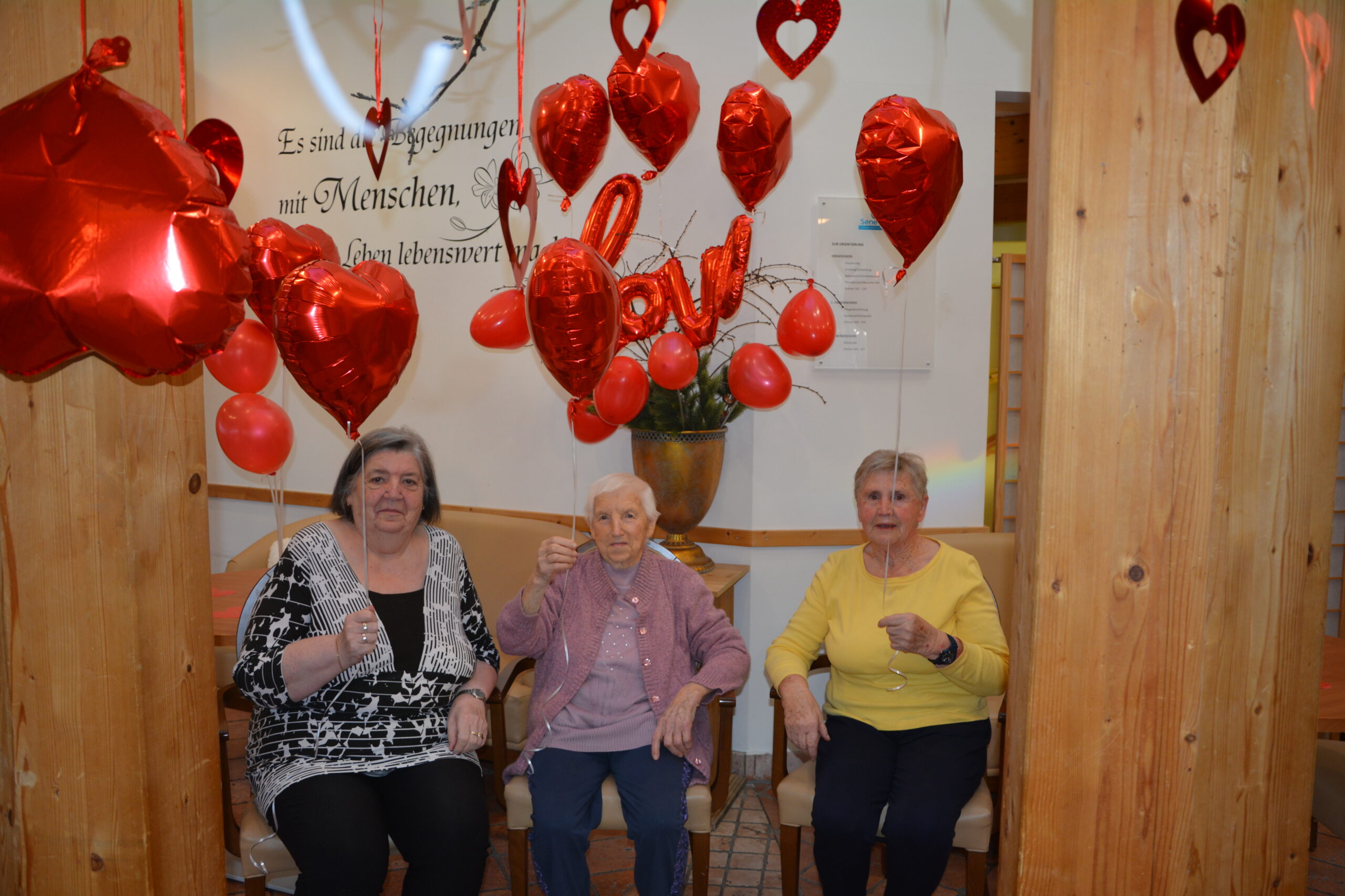 Die Bewohnerinnen genießen ein herzliches Valentinstagsfest.
