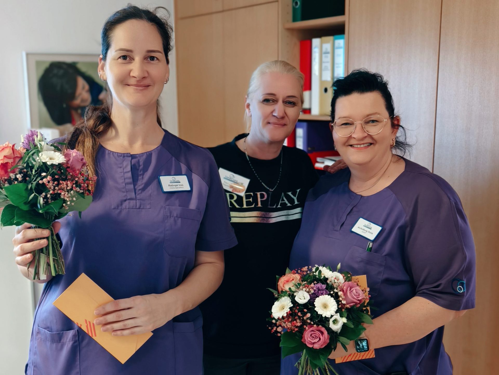 Das SeneCura Sozialzentrum Arnoldstein möchte den Mitarbeiterinnen Doris Aichelburg (50) und Ines Radinger (40) ganz herzlich zu ihren runden Geburtstagen gratulieren. Das Sozialzentrum wünscht den Jubilarinnen alles Liebe und Gute, vor allem aber Gesundheit und Glück auf ihrem weiteren Lebensweg! Für alle Jubilar:innen gibt es als Geburtstagsgeschenk einen Gutschein sowie einen tollen Blumenstrauß – und wie man sieht, es wird sich sehr darüber gefreut.