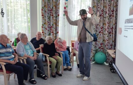 PDL Lukas Mauerhofer erzählt den Bewohner:innen einiges über Afrika.