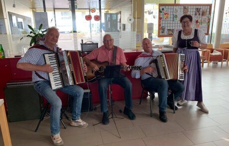 In dieser Woche fand im SeneCura Sozialzentrum Altenmarkt das alljährliche Herbstfest statt. An bunt geschmückten Tischen wurden die Bewohner:innen des Hauses bereits am Nachmittag mit köstlichen Bauernkrapfen und Kaffee verwöhnt. Zudem wurde bei bester musikalischer Unterhaltung gesungen, geplaudert und gelacht. „Einfach ein toller, geselliger Nachmittag – sowas könnten wir täglich machen.“, freute sich eine Bewohnerin. Abschließend gab es noch eine zünftige Bauernjause mit Käse, Speck und Bauernbrot.