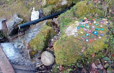 Die bunt verzierten Steine wurden an der Heilquelle im Krastal aufgelegt