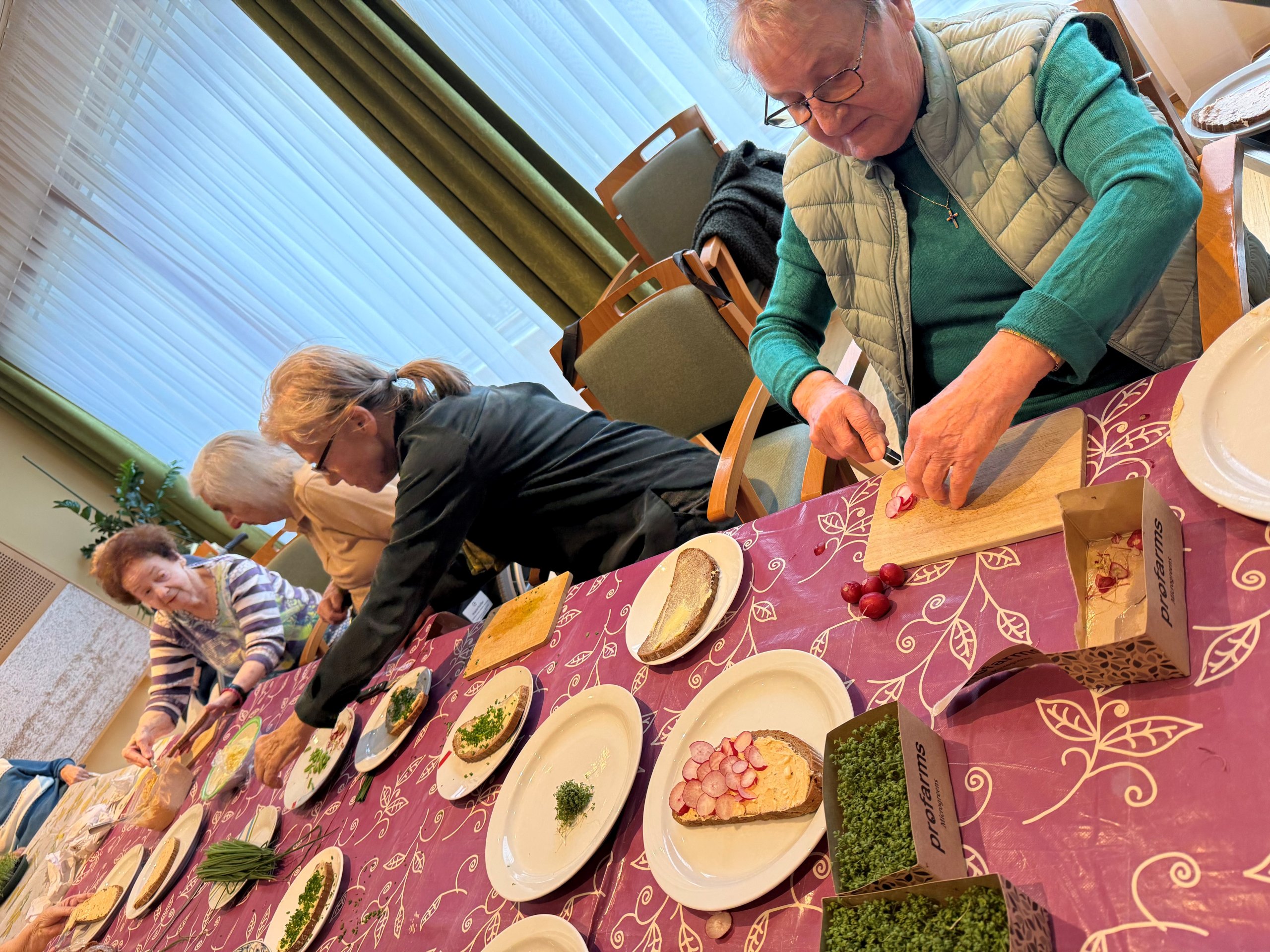 Mit den ersten warmen Sonnenstrahlen hielt auch der Frühling im SeneCura Bad St. Leonhard Einzug – und das wurde gemeinsam mit einer gemütlichen Frühlingsjause gefeiert. Unsere Bewohnerinnen und Bewohner bereiteten sich ihre Brote ganz nach ihrem Geschmack selbst zu: Frisches Brot, cremige Butter, knackige Radieschen und duftende Kresse standen bereit. Mit viel Freude wurde gestrichen, belegt und natürlich auch gleich probiert. Die frischen Zutaten erinnerten viele an den eigenen Garten oder an frühere Frühlingszeiten zuhause. Dabei entstanden schöne Gespräche, gemeinsames Lachen und viele kleine Erinnerungen wurden wieder lebendig. Der Duft der Kresse und das leuchtende Rot der Radieschen brachten nicht nur Farbe auf die Teller, sondern auch ein Stück Frühling in unseren Alltag. In gemütlicher Runde wurde genossen, erzählt und einfach das Zusammensein geschätzt. Solche Momente zeigen, wie wichtig gemeinsame Aktivitäten sind: Sie wecken Erinnerungen, fördern die Selbstständigkeit und schaffen wertvolle Augenblicke der Gemeinschaft. Wir freuen uns schon auf viele weitere fröhliche Frühlingsmomente bei uns im Haus.