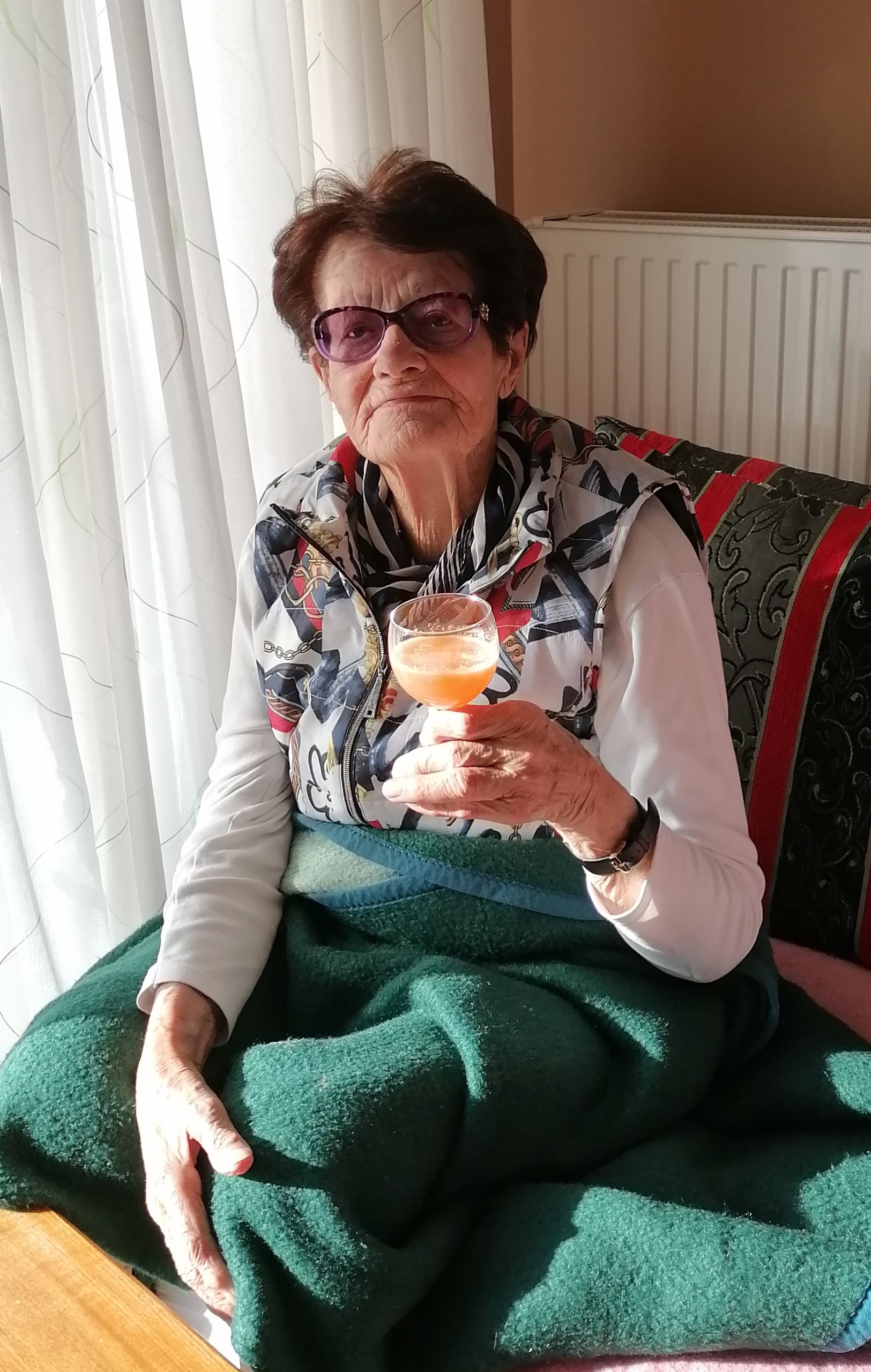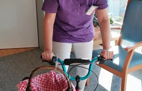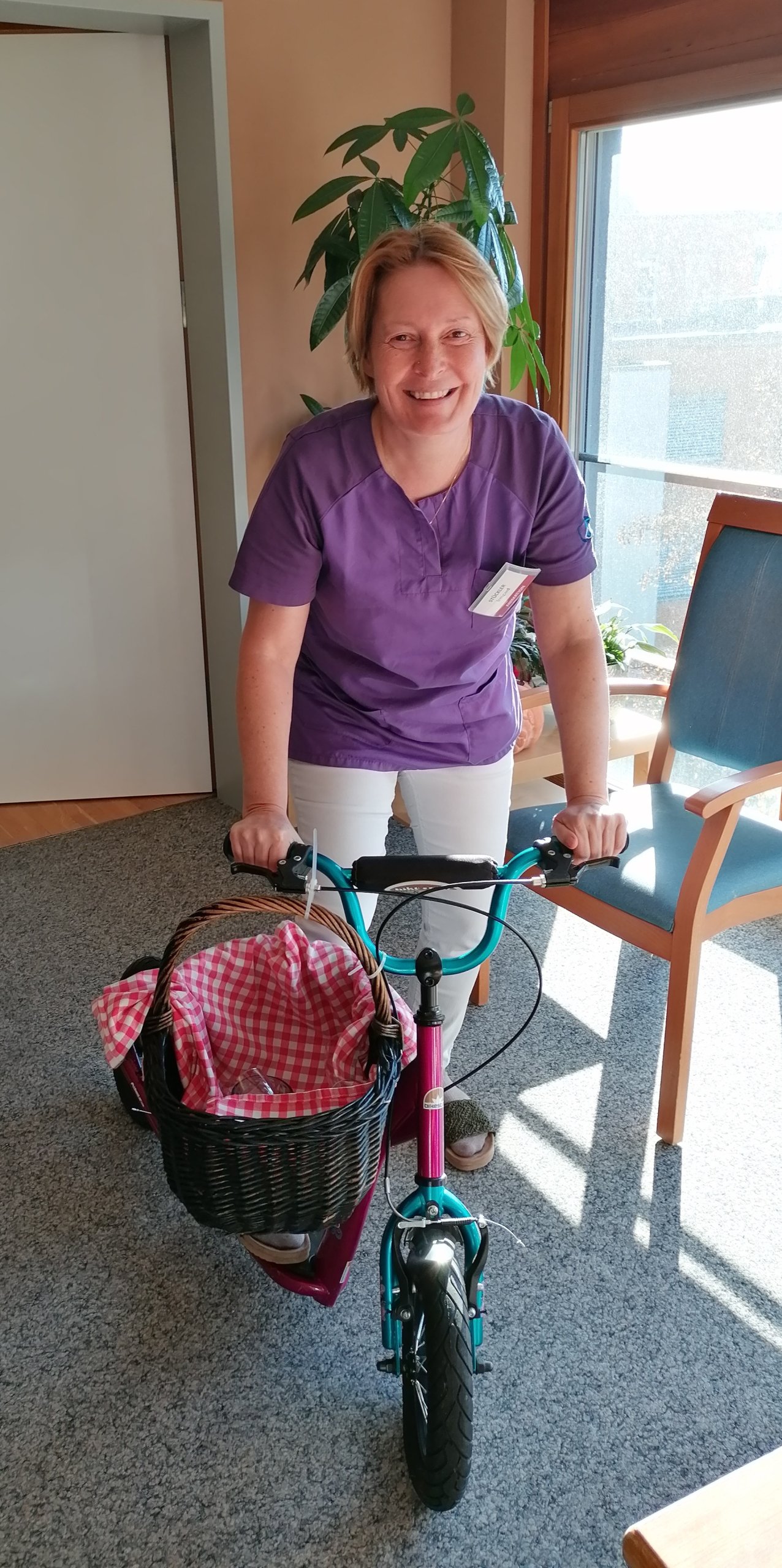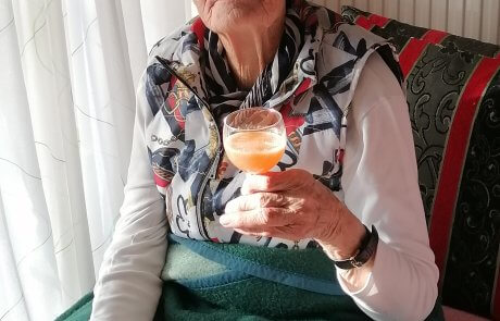 Irmi unterhielt die Senior:innen nachmittags mit der rollenden Saftbar