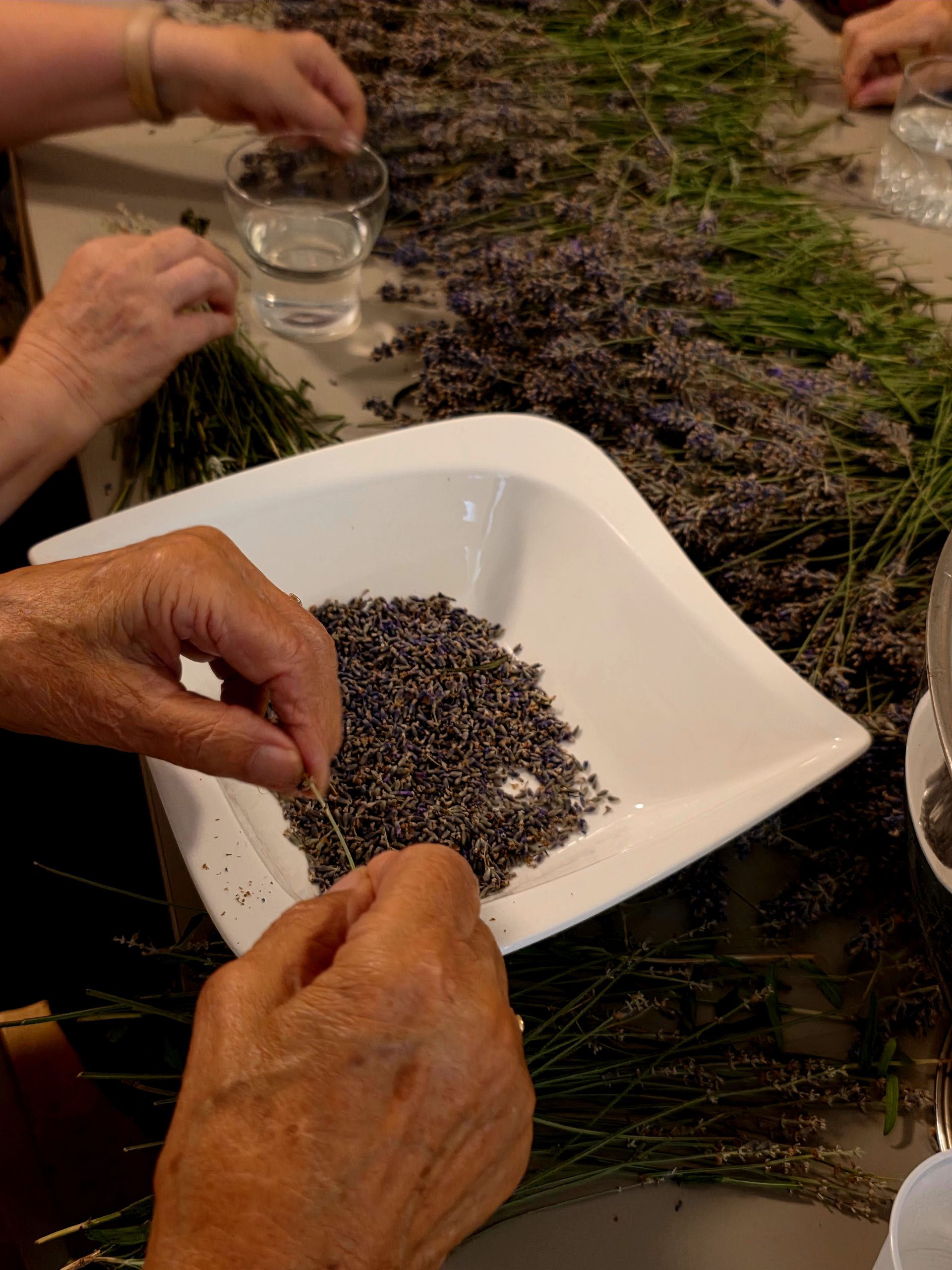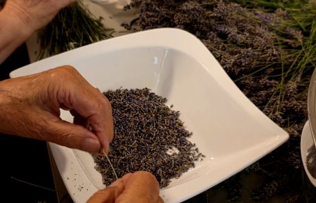Gemeinsam rebelte man den Lavendel und füllte ihn anschließend in Säckchen.