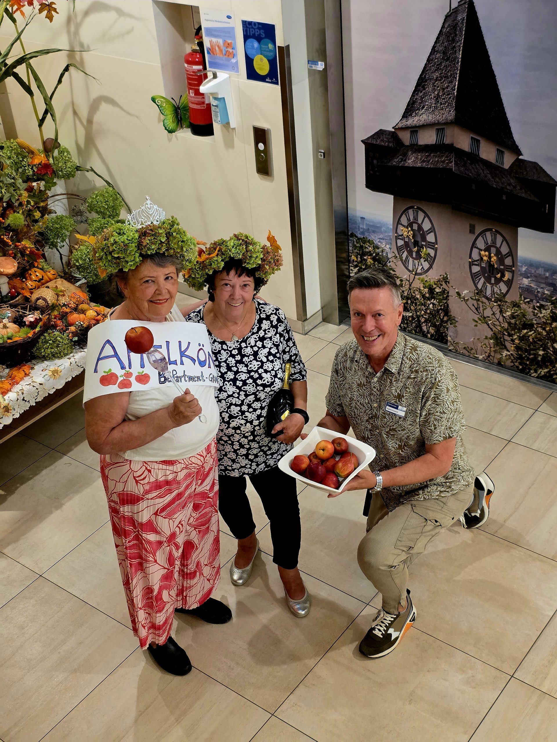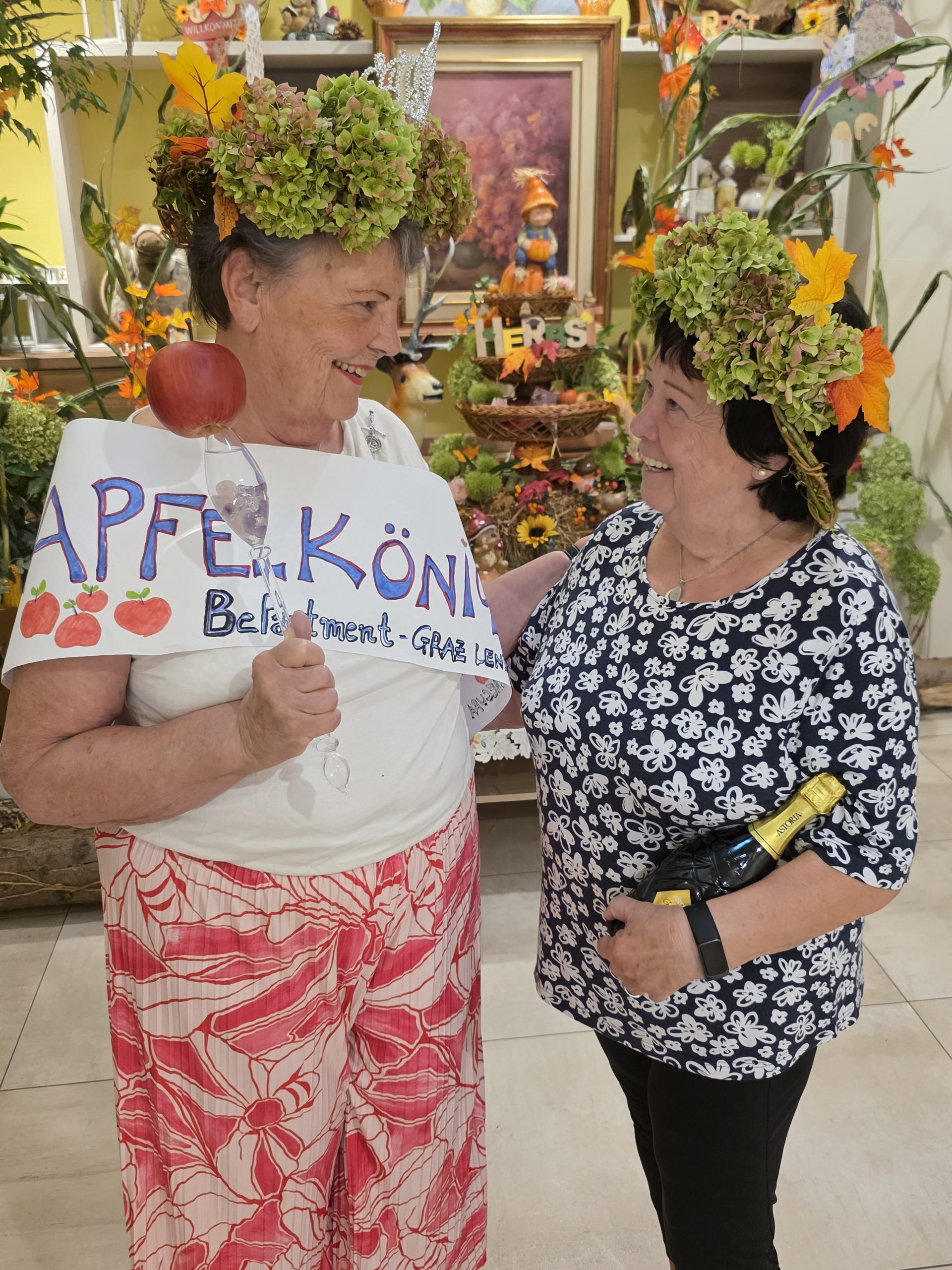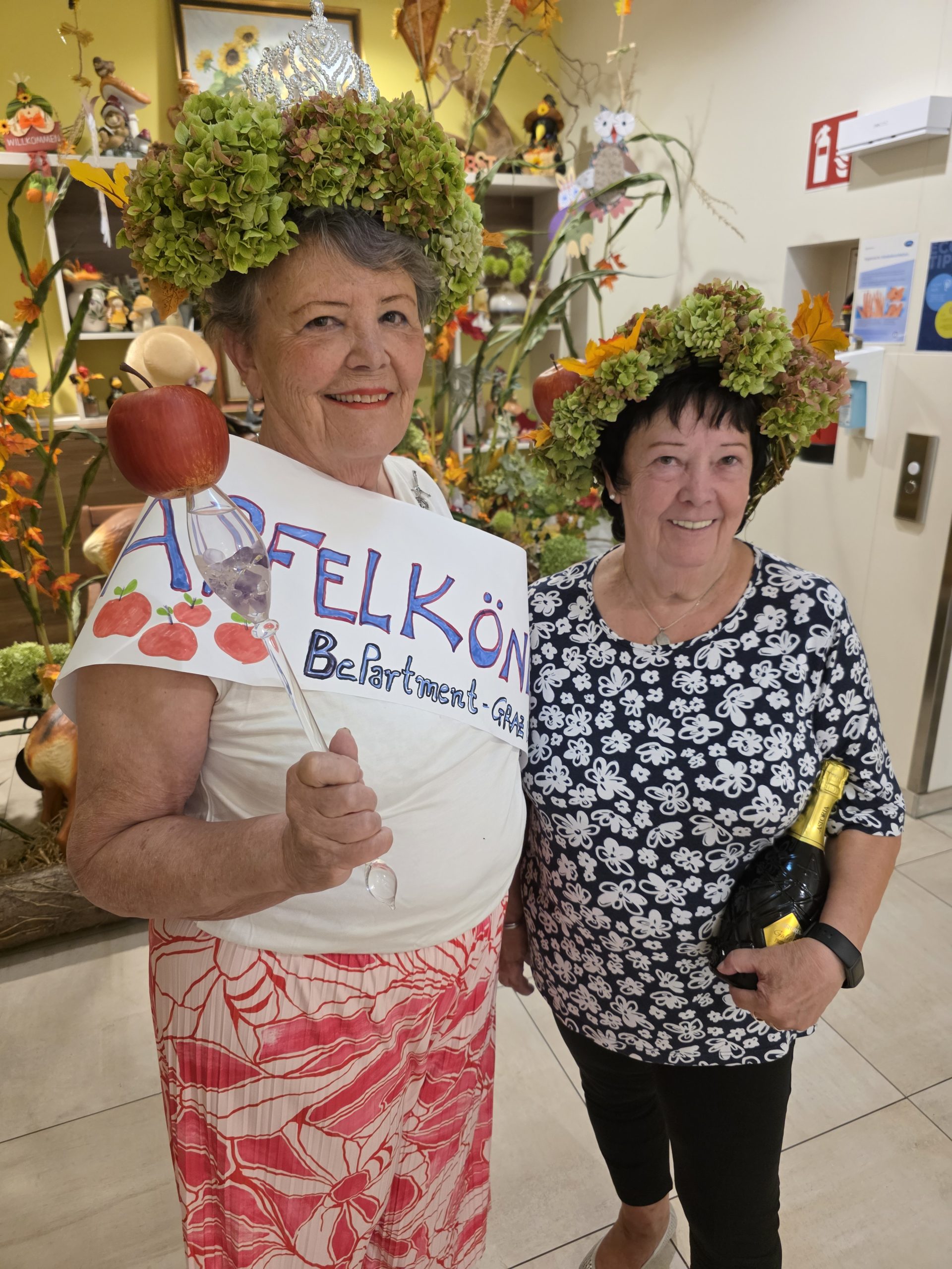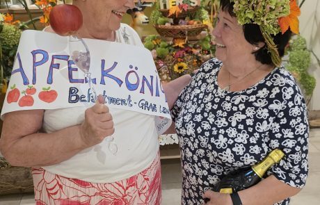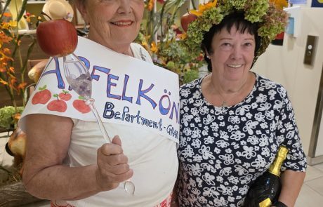 Kürzlich wurde im SeneCura BePartments Graz-Lend ein ganz besonderer Wettbewerb abgehalten – die Wahl zur/zum Apfelkönig:in. Um die Wahl zu gewinnen, mussten die Teilnehmer:innen viele Einzelheiten zum Thema Apfel wissen. So wurde beispielsweise ein Apfelquiz veranstaltet, ein Apfelgedicht musste aufgesagt und viele Wissensfragen rund um den Apfel beantwortet werden. Schlussendlich konnten zwei Bewohnerinnen den Titel der Apfelkönigin tragen: Waltraud, die 1. Großherzige von SeneCura und Kronprinzessin Doris, die 1. Fürsorgliche wurden standesgemäß gekrönt und dürfen sich ab nun Apfelkönigin und Kronprinzessin nennen. „Ein toller Wettbewerb.“, ist man sich im SeneCura BePartments Graz-Lend einig.