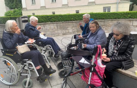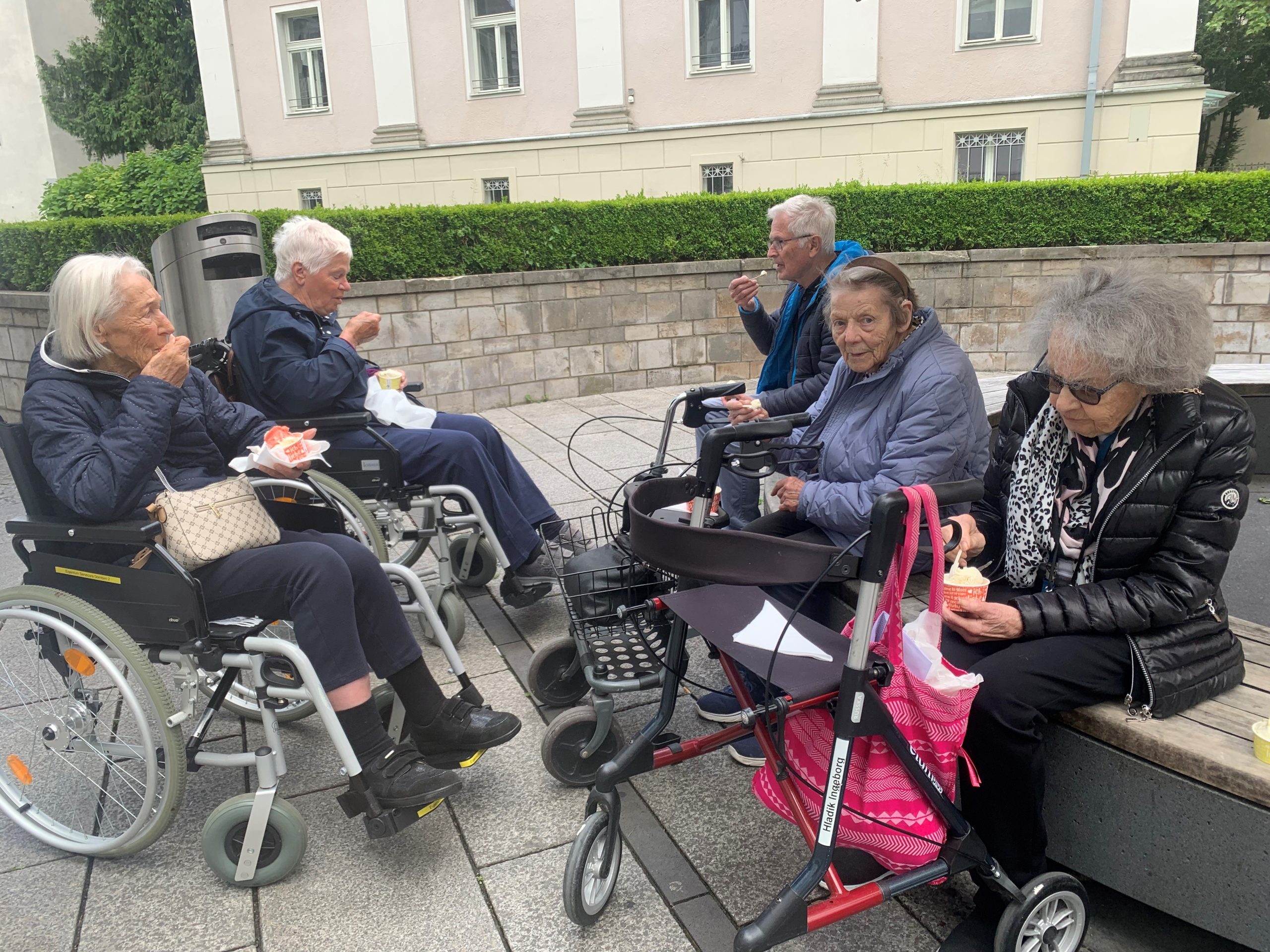 Bei schönem Wetter unternahmen die Bewohner:innen des SeneCura Sozialzentrums Dornbirn und der BePartments einen gemeinsamen Spaziergang in die Dornbirner Innenstadt. Die Bewegung an der frischen Luft, das gemütliche Beisammensein und das Beobachten des Stadtlebens sorgten für gute Laune und lebendige Gespräche. Ein besonderes Highlight war der gemeinsame Eisgenuss – die kühlen Leckereien rundeten den Ausflug perfekt ab und zauberten allen ein Lächeln ins Gesicht. Ein gelungener Nachmittag, der bald wiederholt wird!