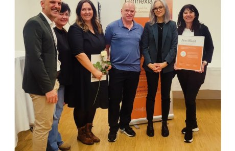 Ein weiterer Grund zur Freude: Unser Haus erhielt ein Zertifikat für die Teilnahme am Projekt „Weiterentwicklung der gerontopsychiatrischen Kompetenzen in der stationären Langzeitpflege“. Dieses wurde von unserer Leitung gemeinsam mit der stellvertretenden Leitung Manuela Armellini entgegengenommen.