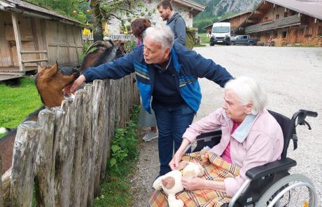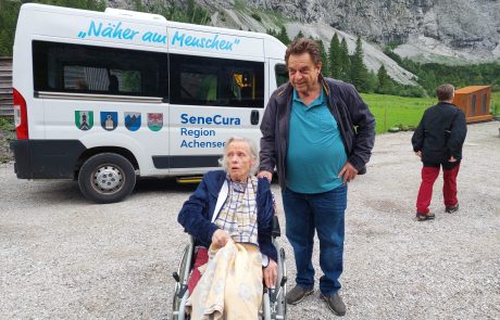 Am Montag unternahm Zivildiener Paul vom SeneCura Sozialzentrum Eben gemeinsam mit den beiden Bewohnerinnen Rosi und Helga sowie deren Begleitpersonen – den jeweiligen Ehemännern und einer Tochter – einen Ausflug zur idyllisch gelegenen Gramai Alm.