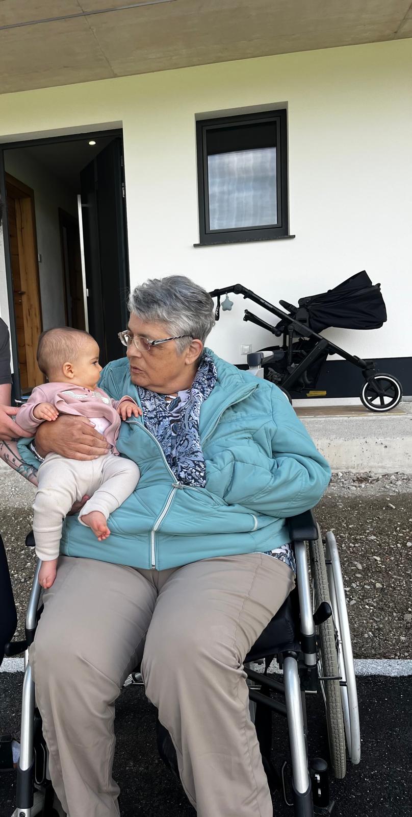 Nach einem leckeren Mittagessen stand die Besichtigung des neu gebauten Doppelhauses ihrer beiden Söhne auf dem Programm. Dort kam es auch zu einem besonders schönen Moment: Christine konnte ihre Enkeltochter Laura treffen und sie herzlich in die Arme schließen.