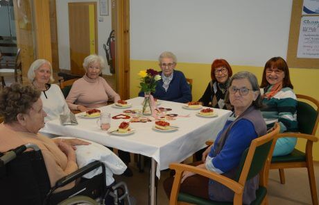 Mit köstlichem Erdbeerkuchen wurden die Bewohner:innen verwöhnt