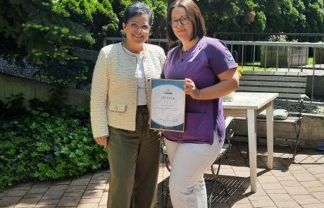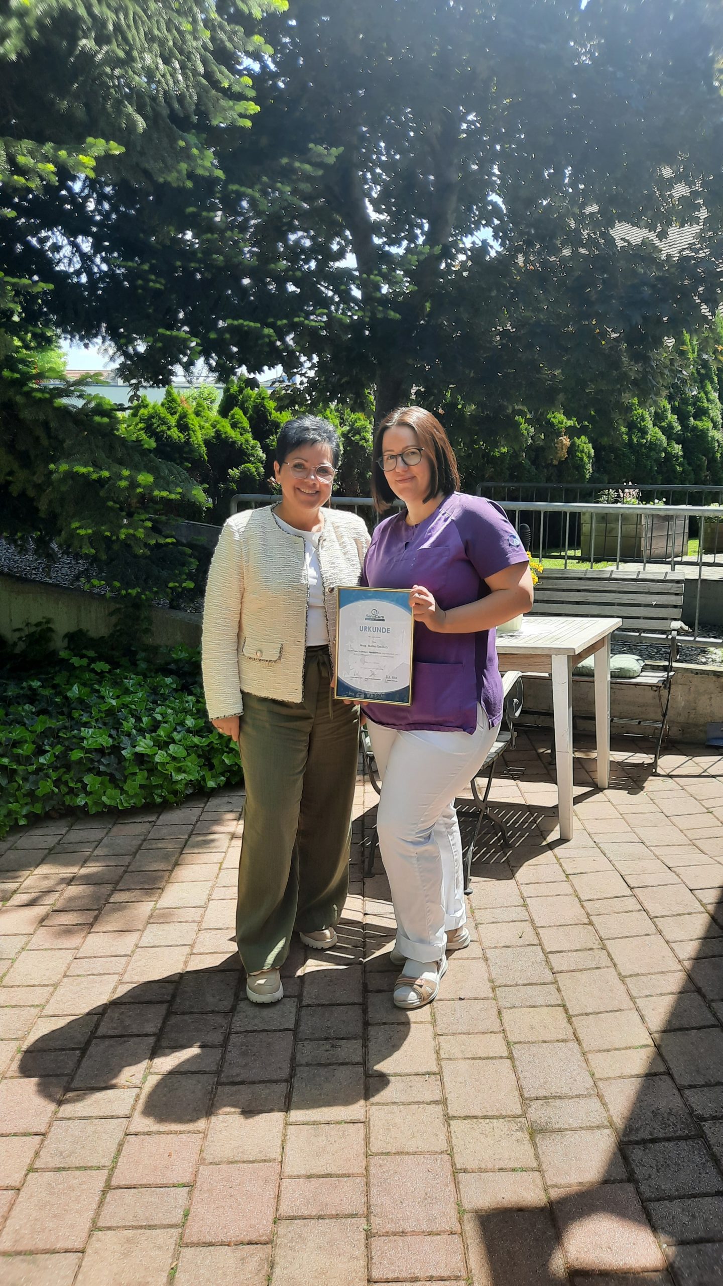 Im SeneCura Sozialzentrum Feldbach wurde Mitarbeiterin Mag. Melisa Deutsch von Hausleitung Dir. Karin Erkenger zum 15-jährigen Dienstjubiläum feierlich geehrt. „Es ist SeneCura ein Anliegen, Mitarbeiter:innen auf diese Weise Wertschätzung und Dank für ihre tolle langjährige Arbeit entgegen zu bringen.“, so Dir. Karin Erkenger, Hausleitung SeneCura Feldbach – Haus Melisse.