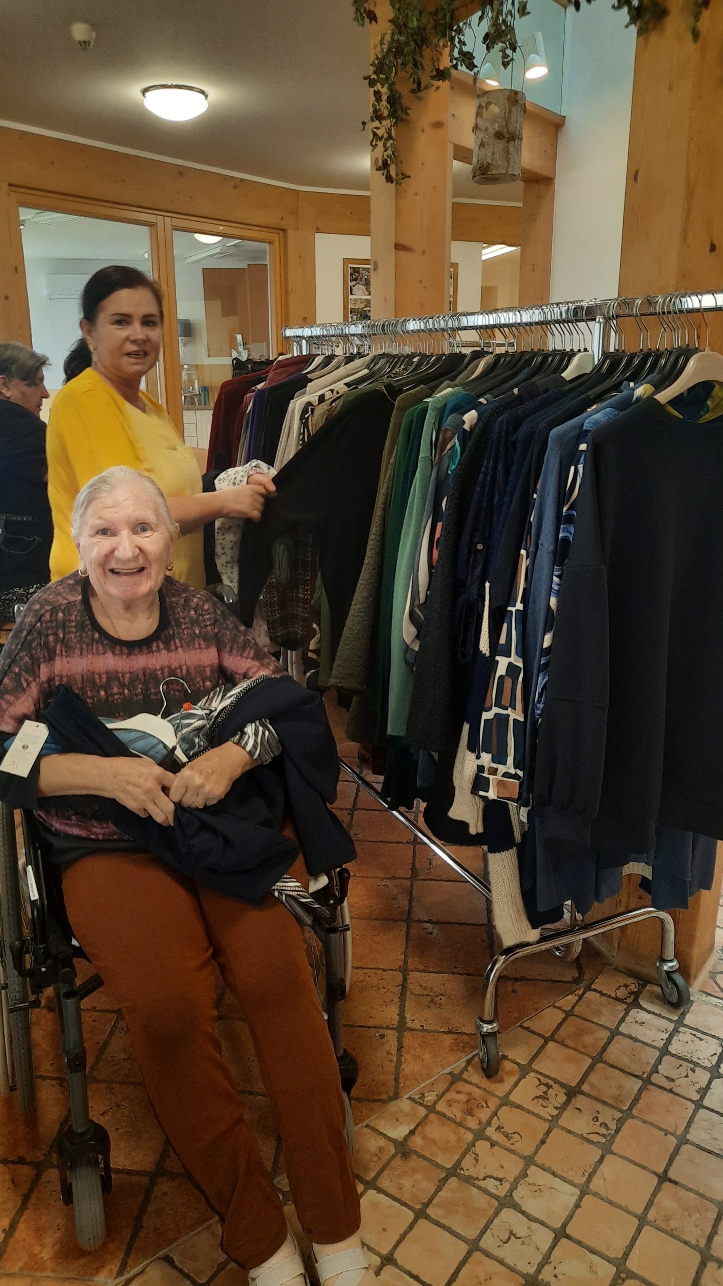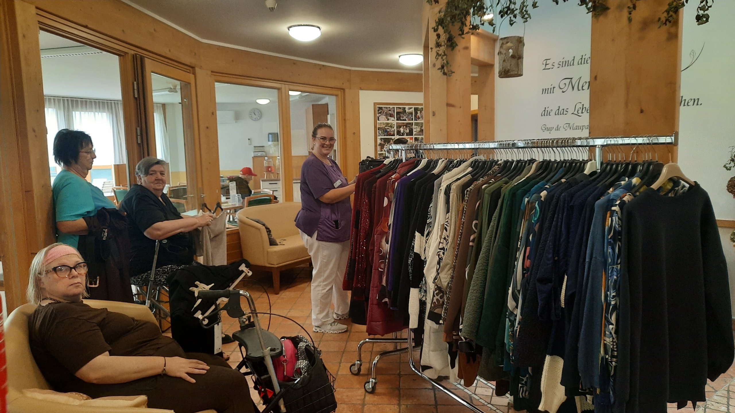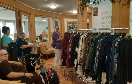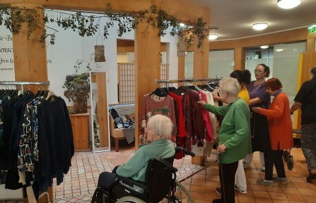 Im Herbst haben die Bewohner:innen des SeneCura Sozialzentrums Feldbach die Möglichkeit, RM-Mode aus Italien ganz gemütlich im Sozialzentrum einzukaufen. Der Aufenthaltsraum wurde in eine Boutique umgebaut, um das Einkaufserlebnis so echt wie möglich zu gestalten. Der Andrang der Senior:innen war groß und es wurde geschmökert, probiert und eingekauft. Schon Tage davor zeigte sich Vorfreude, vor allem bei den Damen! „Ein herrliches Erlebnis, dass man hier Bekleidung shoppen kann und das ganz ohne erheblichen Aufwand – einfach toll.“, so eine Bewohnerin des SeneCura Sozialzentrums Feldbach, Haus Melisse.