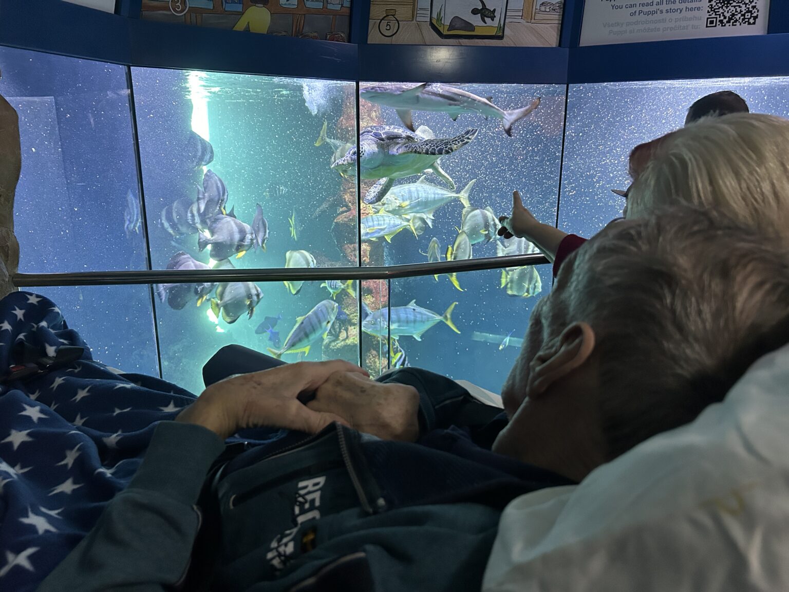 Kürzlich ging ein Herzenswunsch von Holger, Bewohner des SeneCura Pflegezentrums Gratkorn in Erfüllung. Der Senior, der früher viele Reisen unternommen hat, wünschte sich sehnlichst noch einmal das Haus des Meeres in Wien zu besuchen und dort die Unterwasserwelt zu bestaunen, da auch er leidenschaftlicher Taucher war. Gesagt, getan. Die rollenden Engel unterstützen das SeneCura Gratkorn und so ging es Richtung Wien. Im Haus des Meeres angekommen, ging es mit Mitarbeiterin Sandra in den siebten Stock, wo ein großes Aquarium mit vielen großen Fischen auf Holger wartete. Danach ging es weiter zur Wasserschildkrötenfütterung, wo Tierpfleger die Tiere mit Gurken und Salat fütterten. Im nächsten Stock ging es dann noch zum Haibecken, wo der Senior in Erinnerungen schwelgte – in jungen Jahren tauchte er bereits mit Haien. Am Ende der Besichtigung bot sich Holger noch ein wunderbarer Blick auf der Aussichtsplattform über die Stadt Wien. Danach traten alle begeistert wieder die Heimfahrt an. „Holger war begeistert vom Ausflug. Ein herzliches Dankeschön gilt den rollenden Engeln, die diesen Wunsch ermöglichten.“, so Patrick Hausegger-Apai, Hausleitung des SeneCura Gratkorn.