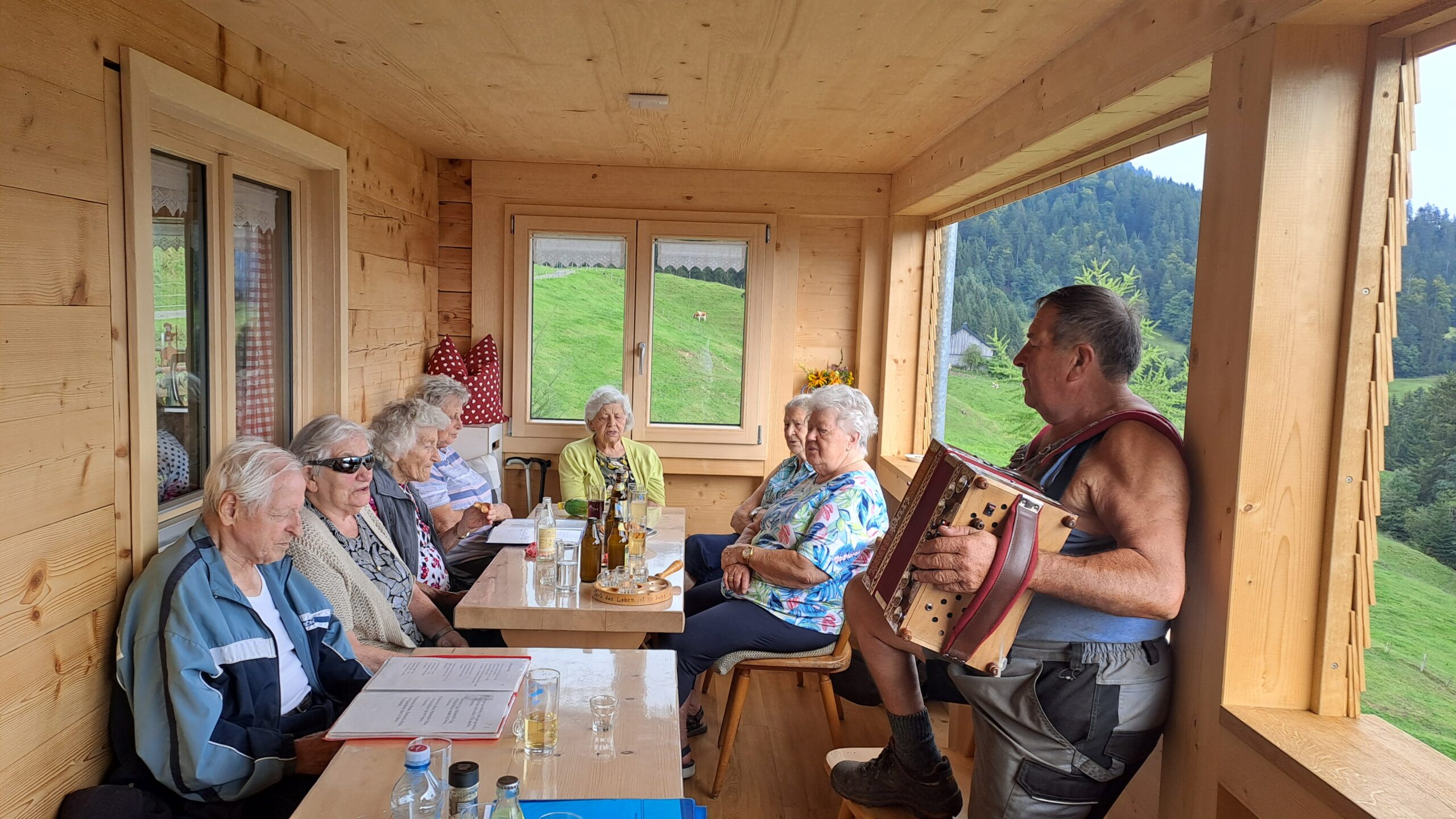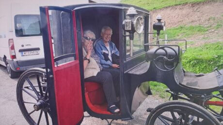Kürzlich konnte ein Herzenswunsch von Emma Vögel, Bewohnerin des SeneCura Sozialzentrums Hohenems, erfüllt werden. Ihr Wunsch war ein Ausflug auf die Alm ihrer Familie. Dieser Wunsch wurde ihr gerne erfüllt. Gemeinsam mit Arnulf Mathis, ebenfalls Bewohner im SeneCura Hohenems, und einigen Freundinnen sowie ihrem Sohn Hermann ging es nach Sibratsgfäll und von dort aus auf die Alm Hochegg. Dort wurde die Truppe schon erwartet. Ihre Schwägerin hat die Ausflügler:innen bewirtet – es gab ausgezeichnete Kässpätzle mit Salat. Danach wurde gemeinsam gesungen, begleitet von der Handorgel. Die Krönung des Tages war eine Fahrt mit der Kutsche. Es war ein gelungener Nachmittag, der Frau Vögel noch lange in Erinnerung bleiben wird.