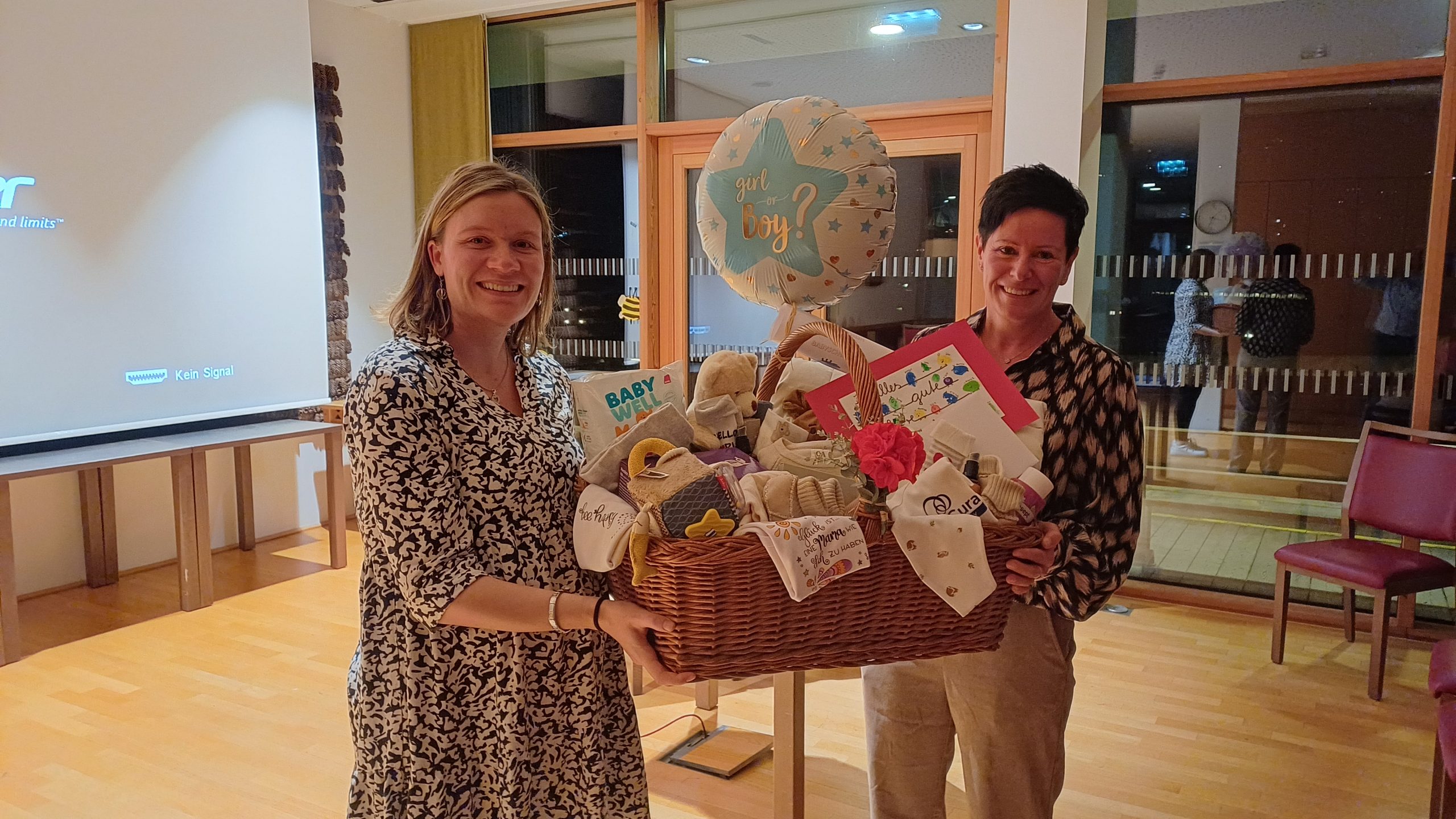 Auch wenn der Abschied nicht leichtfällt, überwiegt die Freude auf die besondere Zeit, die nun vor ihr liegt. Als Dankeschön für ihre großartige Arbeit überreichte das Team einen liebevoll gestalteten Geschenkkorb mit Babyausstattung, kleinen Wohlfühlprodukten und vielen guten Wünschen.