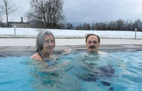 Im SeneCura Sozialzentrum Knittelfeld bieten wir unseren Bewohnerinnen und Bewohnern zumindest einmal im Jahr die Möglichkeit, die nahegelegene Therme in Fohnsdorf zu besuchen. Diesmal machten sich drei Bewohner:innen gemeinsam mit drei Begleitpersonen auf den Weg in die Aqualux Therme Fohnsdorf. Frau Leibrecht, Herr Plamoser und Frau Kaippel freuten sich sehr über diese besondere Gelegenheit. Vor Ort genossen sie das warme Wasser und die wohltuende Entspannung – ein Gefühl der „Schwerelosigkeit“, das Körper und Geist gleichermaßen guttat. Die angenehme Atmosphäre und die gemeinsame Zeit machten den Ausflug zu einem besonderen Erlebnis. Mit vielen schönen Eindrücken und sichtlich erholt kehrten unsere Bewohner:innen ins Haus zurück und erinnerten sich noch lange gerne an diesen entspannten Tag.
