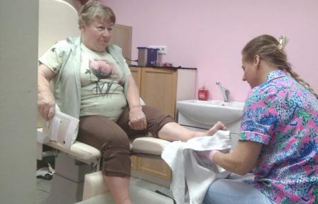 Bewohnerin Gerhild Egger bei der Pediküre