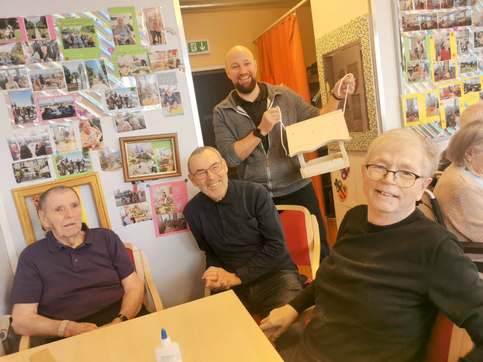Lautes Hämmern hallt seit ein paar Tagen durch das SeneCura Sozialzentrum Lauterach. Es wird eifrig geschnitten, gesägt und gehämmert. Mit Feuereifer sind die Bewohner:innen dabei, für die Kleinkinderbetreuung auf dem Spielplatz Vogelhäuschen herzustellen. Und die bunten Häuschen können sich wirklich sehen lassen, ist man sich einig. Eine tolle kreative Leistung von den Bewohner:innen sowie den Seniorenbetreuer:innen Sandrina und Doris.