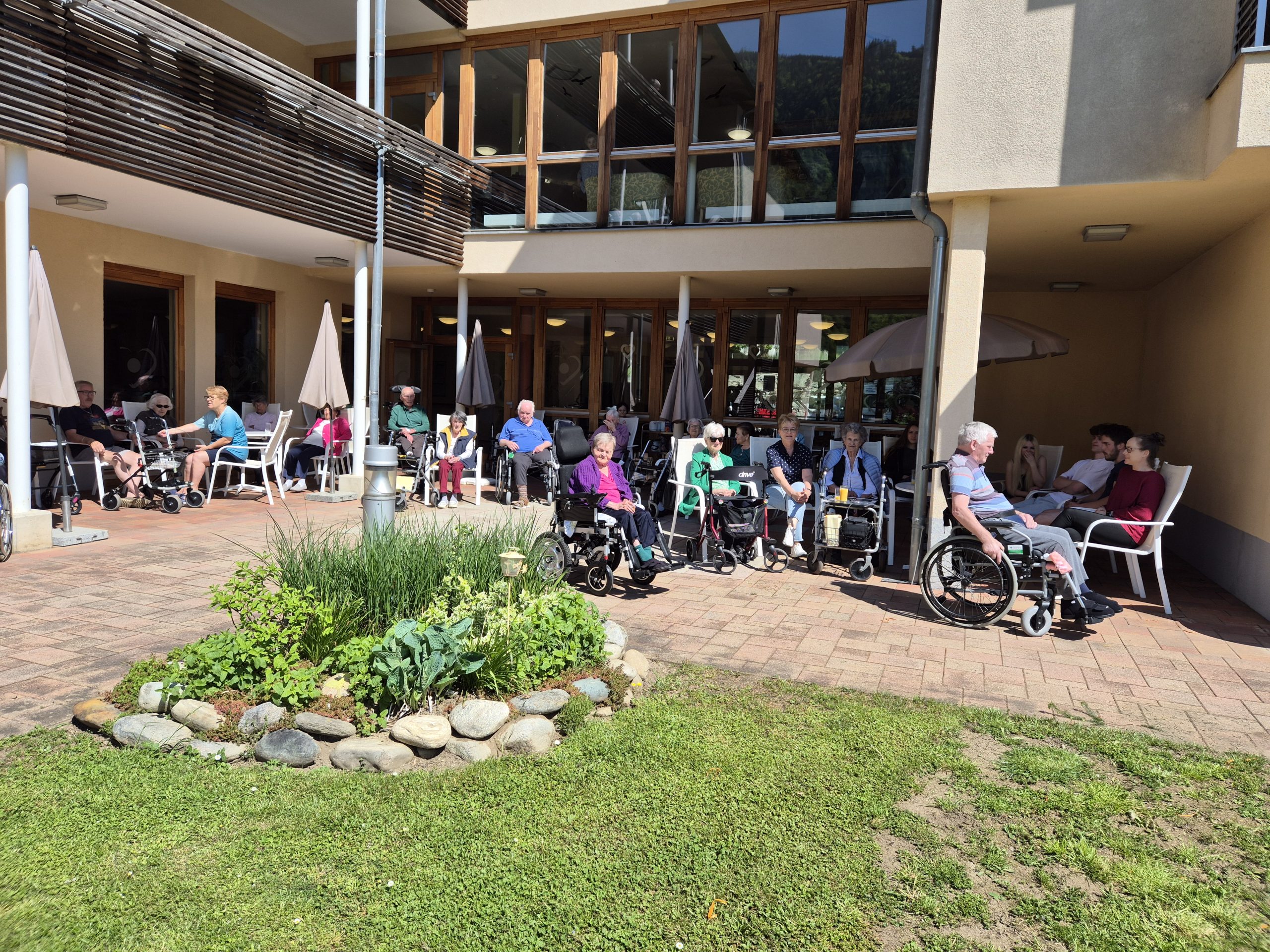 Viele Bewohner:innen beim diesjährigen Maibaumaufstellen im SeneCura Mühldorf
