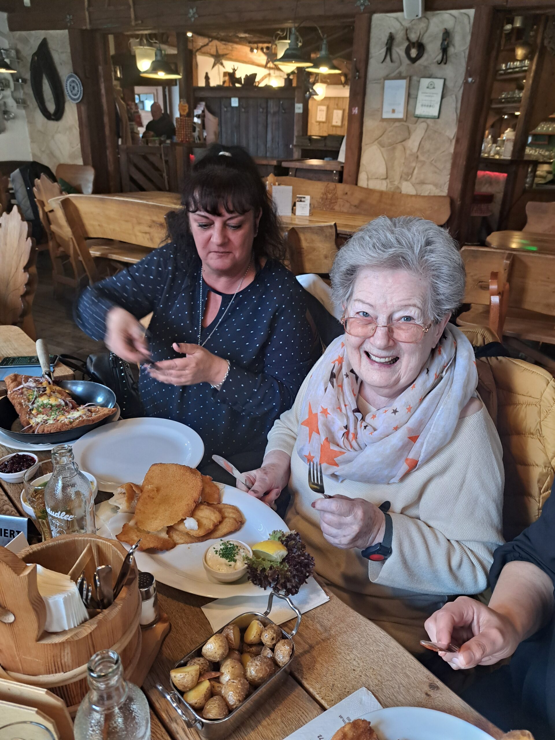 In der SeneCura Residenz Oberdöbling wurden vor Kurzem einige Jahreswünsche erfüllt. Begleitet von ein paar Mitarbeiter:innen genossen die Bewohner:innen ein leckeres Mitagessen in der Leopoldauer Alm. Die Seniorinnen und Senioren konnten zwischen traditionellen Spezialitäten und hausgemachten Köstlichkeiten entscheiden. In bester Gesellschaft verspeisten die Anwesenden ihre Gerichte und tauschten lustige Geschichten aus. Das Leopoldauer-Alm-Essen war ein wahrer Genuss und die Bewohner:innen schwärmen bis heute noch von dem kulinarischen Tag.