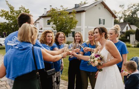 Mit großer Freude gratulierte das gesamte Team des SeneCura Pflegezentrums Schwarzau seiner Wohnbereichsleitung Larissa zu ihrer Hochzeit. Hausleitung Julia Junger und Pflegedienstleitung Claudia Neubauer überbrachten im Namen aller Kolleginnen und Kollegen die herzlichsten Wünsche.