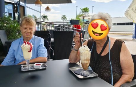 Die Krönung des Nachmittags war ein Besuch im Café in Traismauer. Bei einem Eisbecher genossen alle die warmen Sonnenstrahlen und das Gefühl, einfach den Moment zu leben. Frau Landstetter gönnte sich eine „Heiße Liebe“, Frau Donner einen erfrischenden Eiskaffee – ein Genuss mit Erinnerungswert.