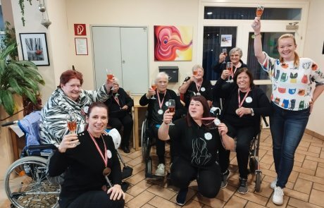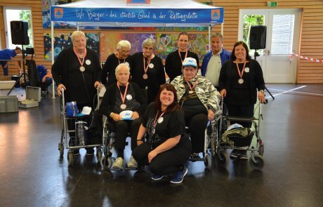 Gespannt und voller Vorfreude nahmen fünf Bewohnerinnen des SeneCura Sozialzentrums Söchau an der diesjährigen Seniorensicherheitsolympiade teil. Wochen davor wurde bereits fleißig mit Physiotherapeutin Daniela trainiert und geübt. Am großen Tag waren alle Teilnehmerinnen einheitlich gekleidet und mit extra gestalteten Buttons als „Team Söchau“ startklar. Begleitet von Physiotherapeutin Daniela und Pflegeassistentin Bianca verbrachten sie den gesamten Vormittag damit, verschiedenste Disziplinen zu absolvieren. Nach einem gemütlichen Mittagessen war es dann soweit – das Team des SeneCura Sozialzentrum Söchau erreichte den großartigen 3. Platz und fuhr stolz mit der Bronzemedaille nach Hause. Dort wurden die erfolgreichen Teilnehmerinnen mit Applaus, Fanfarenklängen und Sekt empfangen. Sichtlich stolz auf die gemeinsame Leistung wurde der Tag gefeiert.