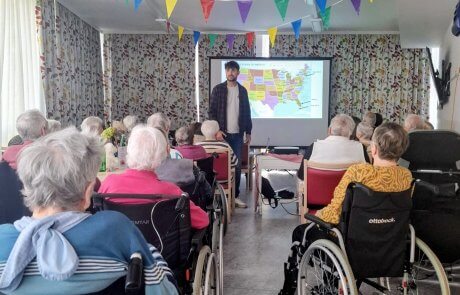 In einem spannenden und amüsanten Vortrag nahm Lukas Mauerhofer, Pflegedienstleitung des SeneCura Söchau alle interessierten Bewohnerinnen und Bewohner mit auf eine Reise nach Amerika. Er verbrachte in diesem Jahr seinen Urlaub dort und sorgte mit viel Fachwissen und der ein oder anderen lustigen Anekdote für einen spannenden Nachmittag. Mit vielen Fotos und den dazugehörigen Geschichten tauchten die Bewohnerinnen und Bewohner in die amerikanische Kultur ein. Zum Abschluss gab es für alle Teilnehmer: innen, typisch amerikanisch, Pancakes zum Verkosten.
