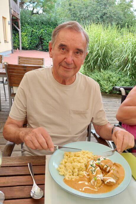 Am Friedrichshof angekommen, wurden die Senior:innen von der Schönheit des historischen Anwesens beeindruckt. Sie erkundeten zu Fuß das Gelände und genossen dabei die frische Luft und die herrliche Umgebung. Besonders die Pause im Garten der Angehörigen eines ehemaligen Bewohners, wo frisches Obst genascht wurde, war eine Gaumenfreude. Zudem konnten sich die Bewohner:innen ausruhen, die idyllische Atmosphäre genießen und vergangene Erlebnisse miteinander teilen. Das gemeinsame Mittagessen im Restaurant des Friedrichshofs bildete den krönenden Abschluss des Ausflugs. „Ich möchte mich herzlich bei unserer Seniorenbetreuerin Petra Opitz für die liebevolle Planung dieses wundervollen Ausflugs bedanken. Sie hat einmal mehr bewiesen, dass das Motto ‚Näher am Menschen‘ im SeneCura Sozialzentrum Frauenkirchen wirklich gelebt wird. Aber auch die aufgeregten Erzählungen der Teilnehmenden über den Tag sprachen für sich“, so Franz Kiss, Leiter des SeneCura Sozialzentrums Frauenkirchen.