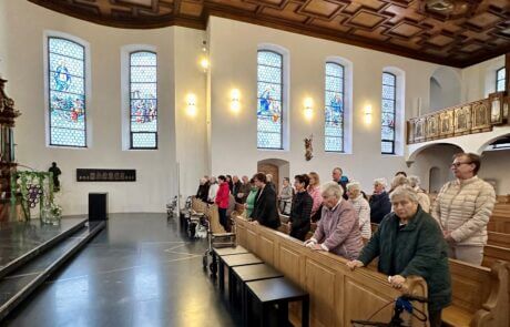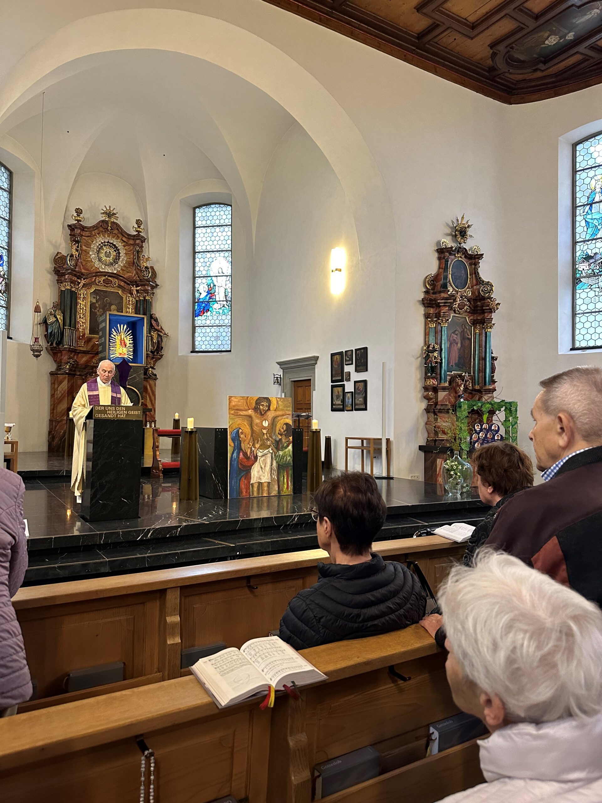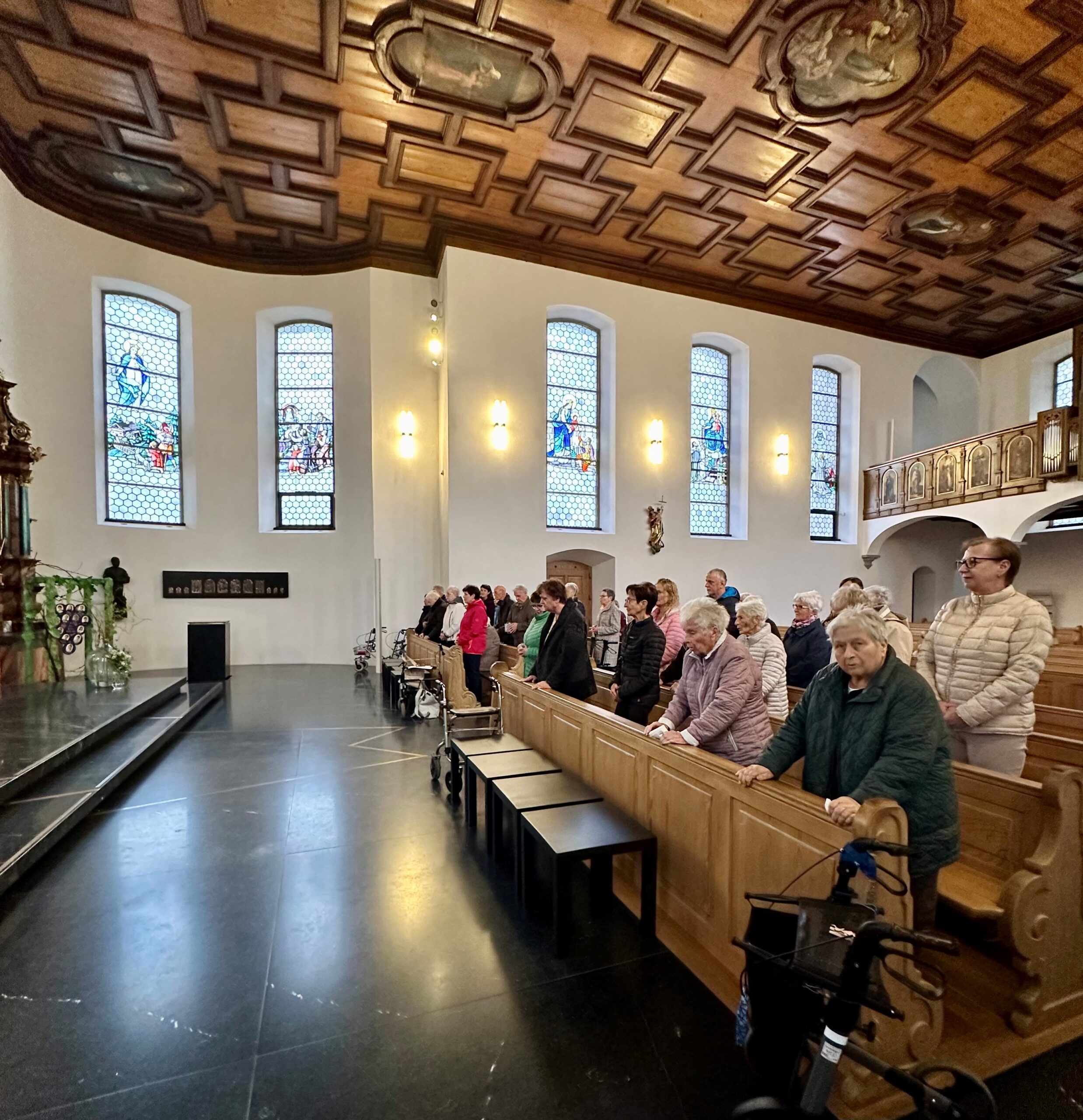 Am Mittwoch, den 27. April 2024 unternahm das SeneCura Sozialzentrum Laurentius-Park Bludenz eine Oster-Wallfahrt in die Basilika Maria Bildstein. Aus mehreren SeneCura Häusern kamen Bewohner:innen, Angehörige und Seelsorger:innen zur gemeinsamen Hl. Messe in der wunderschönen Basilika Maria Bildstein zusammen. Eigens für diesen Anlass hat Pfarrer Paul Burtscher eine Hl. Messe mit uns abgehalten. „Wir fühlen uns sehr geehrt“, so Bewohnerin Frau Wachter Erna aus Bludenz. Wie bei einer Wallfahrt üblich, war auch körperlicher Einsatz gefragt und so bilgerten die rüstigen Seniorinnen und Senioren zum wohlverdienten Einkehrschwung im Anschluss an die Hl. Messe den Hügel hoch zum Gasthof Kreuz. Dort angekommen wurden schon köstlicher Kuchen und Kaffee für alle Anwesenden vorbereitet. „Einen großen Dank möchte ich unserem Seelsorge-Team aus Bludenz für die Idee und die Begleitung unserer ersten, aber sicher nicht letzten „SeneCura Wallfahrt“, aussprechen.“, so PDL Grasmugg Birgit.