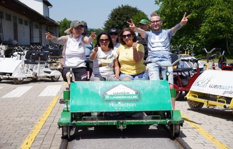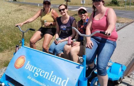 So ging es für die Mitarbeiterinnen ins Burgenland zu einer Drasinentour. Die Drasinen werden wie ein Fahrrad angetrieben und laufen auf Gleise.