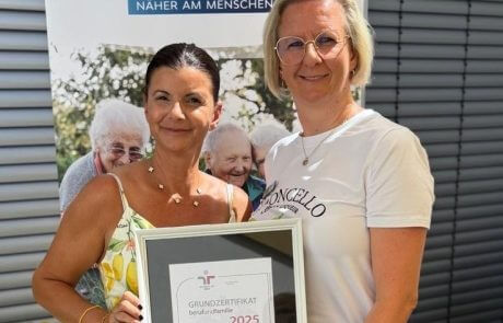 Wir danken allen Mitarbeiterinnen und Mitarbeitern, die diesen Weg mittragen und mitgestalten. Gemeinsam schaffen wir ein Arbeitsumfeld, in dem Beruf und Privatleben gut miteinander vereinbar sind – zum Wohle unseres Teams und letztlich auch unserer Bewohnerinnen und Bewohner.