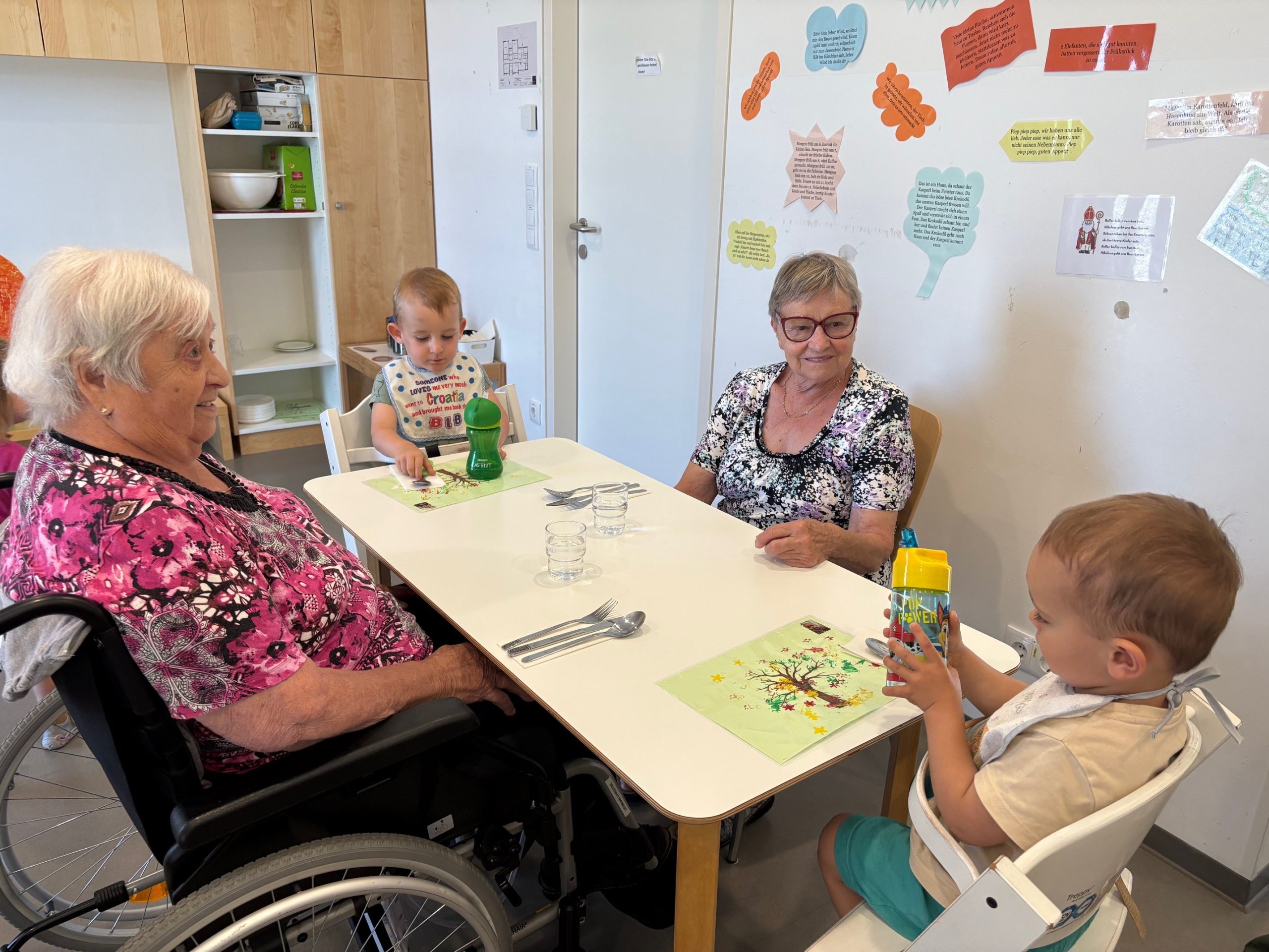 Einige Bewohner:innen des SeneCura Sozialzentrums St. Veit in der Südsteiermark statteten der örtlichen Kinderkrippe einen Besuch ab. Gemeinsam genossen die verschiedenen Generationen ihre gemeinsame Zeit beim Mittagessen und  Spielen. Diesmal wurde das Thema Waldtiere seitens der Pädagoginnen sehr kindgerecht aufbereitet. Die gemeinsame Zeit war für Jung sowie Alt ganz besonders und wertvoll.